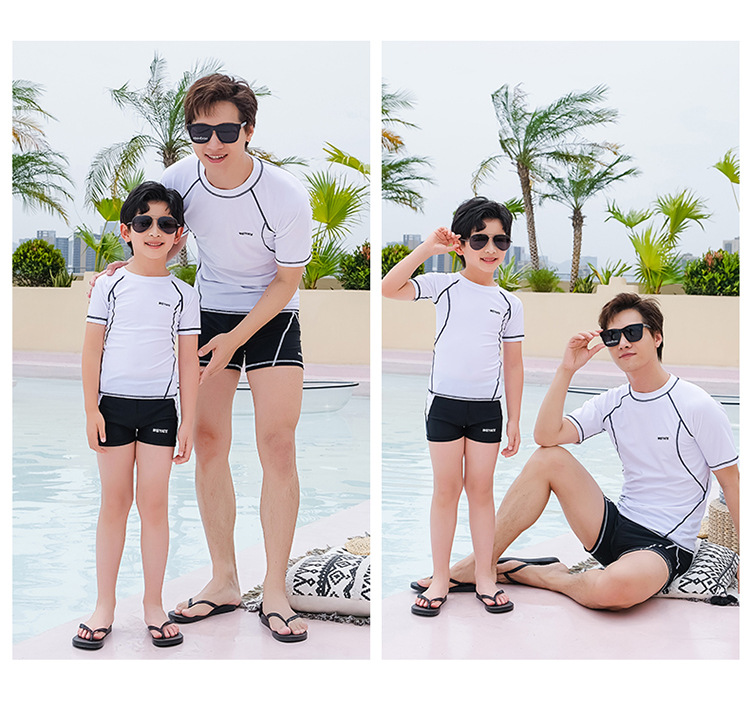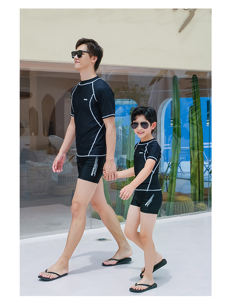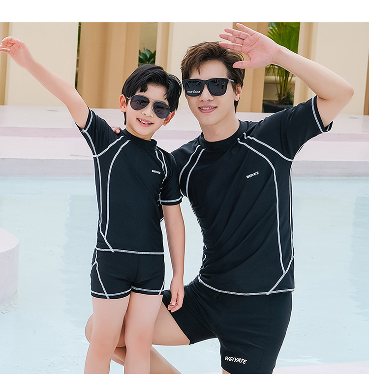 아버지와 아들 부모-자식 수영복 어린이 수영복 분할 태양 방지 통기성 따뜻한 반팔 남아 수영복 남성용 다이빙 세트