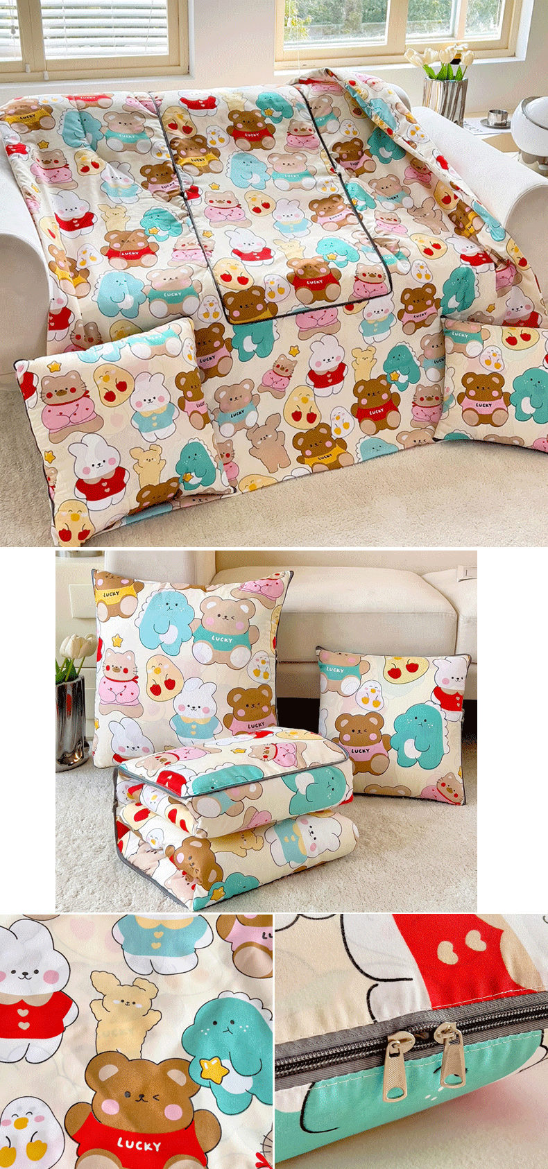 만화 다기능 자동차 쿠션 베개 이불 접이식 베개 이불 점심 시간 이불 자동차 용품 선물 에어컨 이불스토어 가기