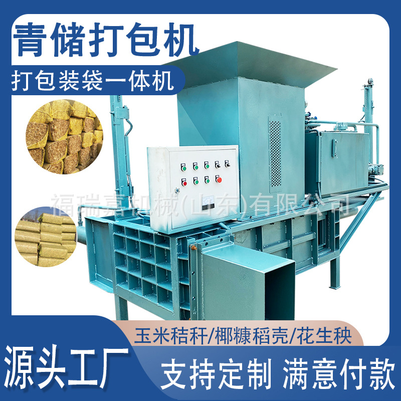 牛羊草料打包装袋机玉米秸秆青储打包机移动式青贮压块打包机