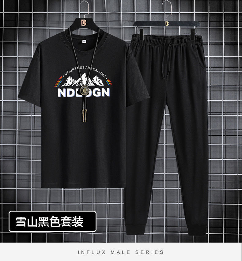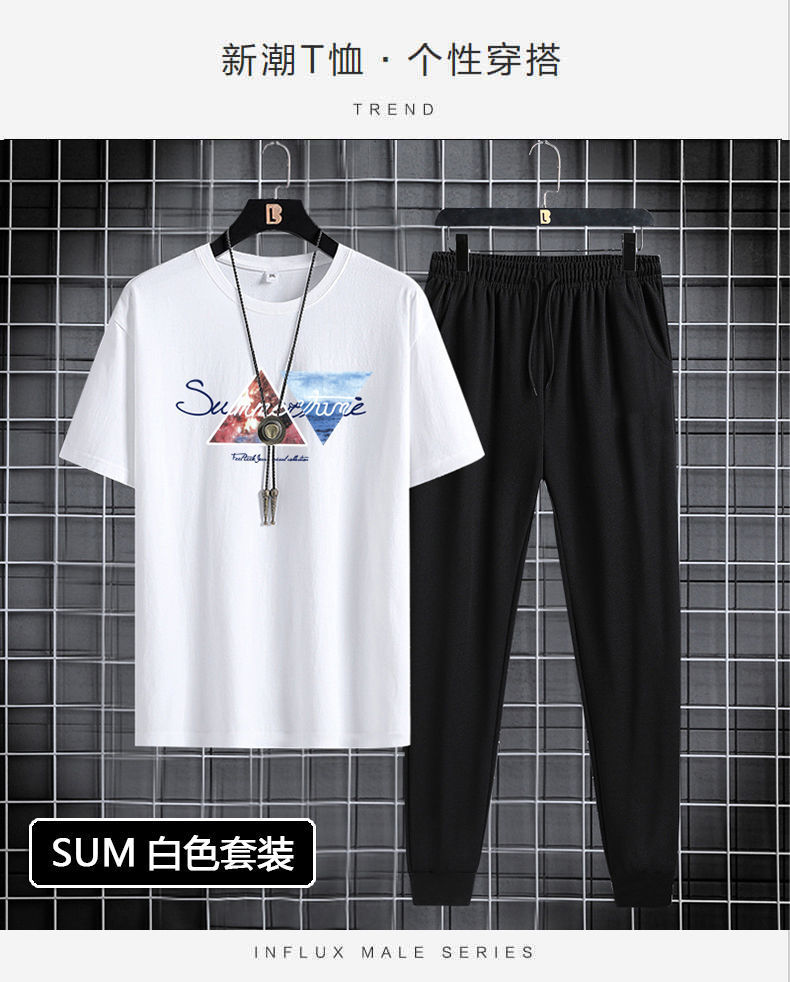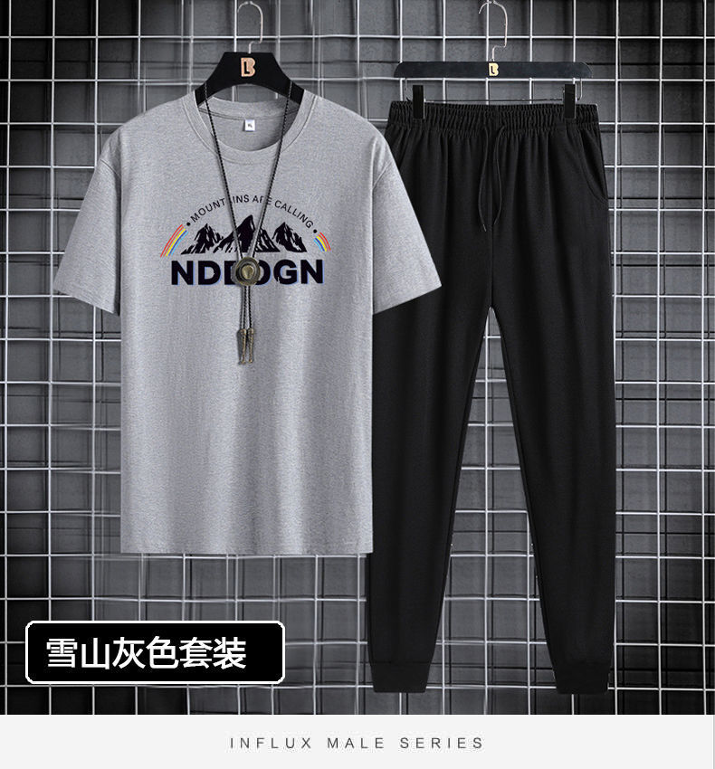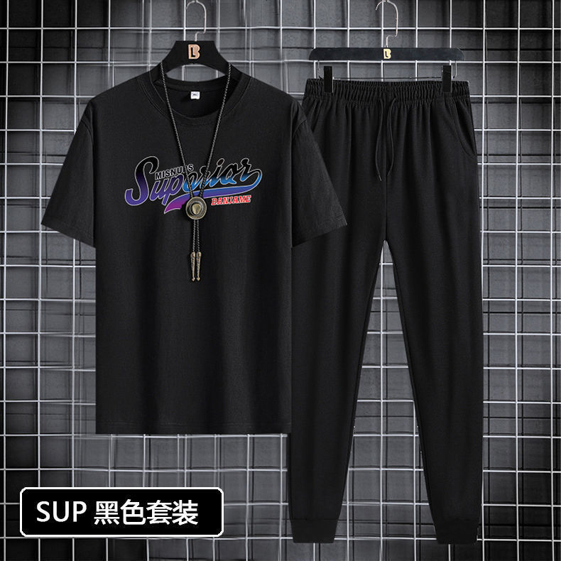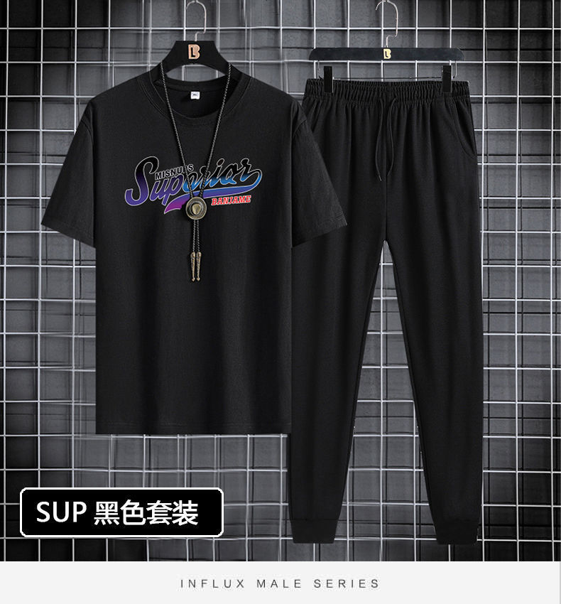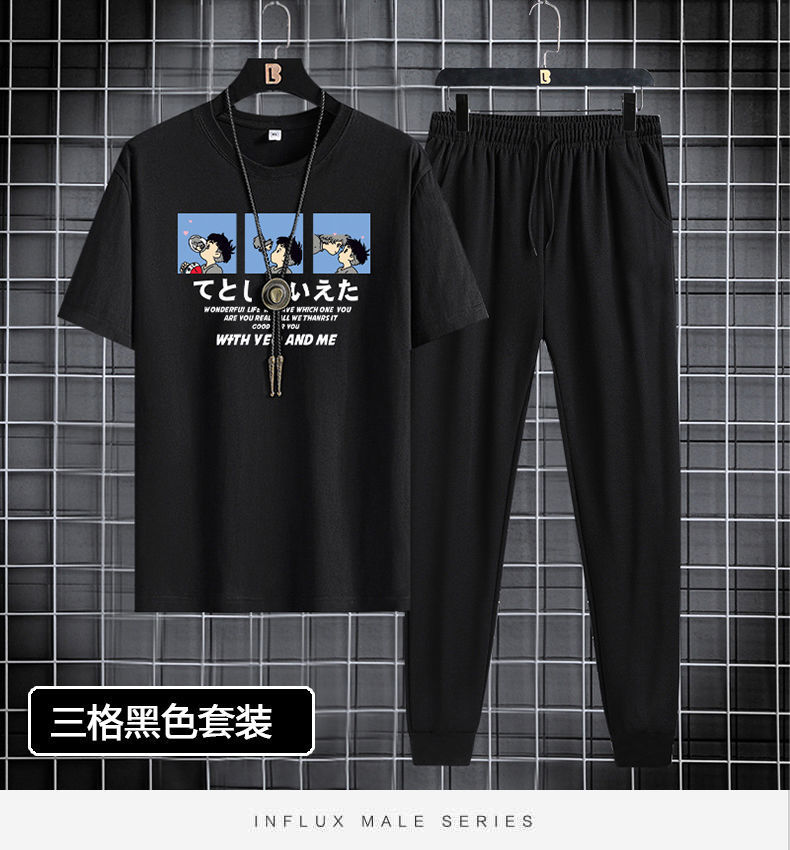 반팔 긴바지 세트 남성용 2024 청소년 남성 스포츠 캐주얼 라운드넥 프린트 투피스 세트 한국 스타일 캐주얼스토어 가기