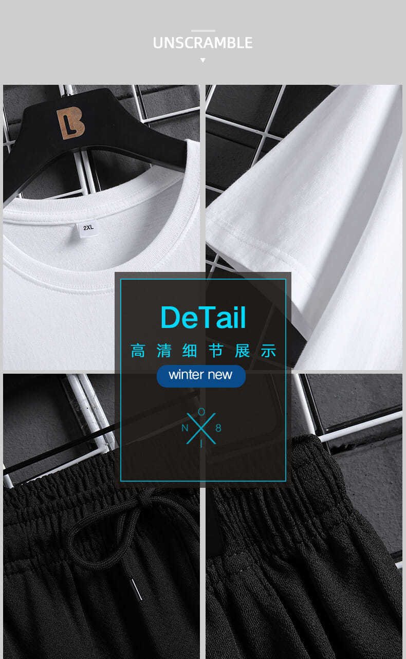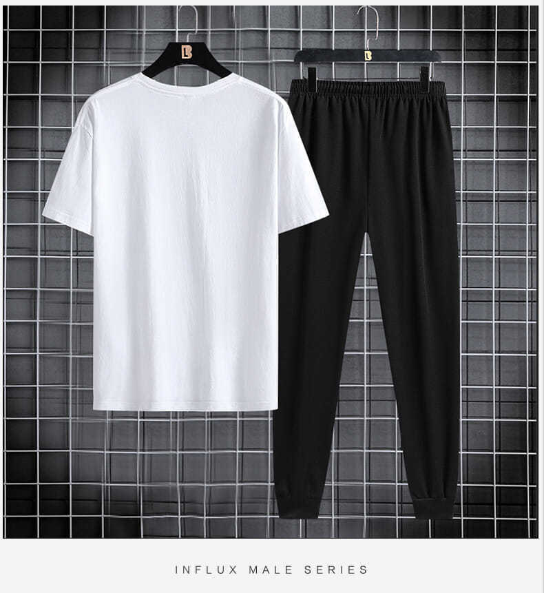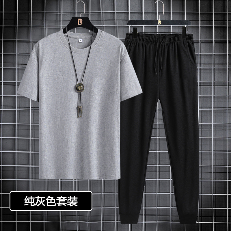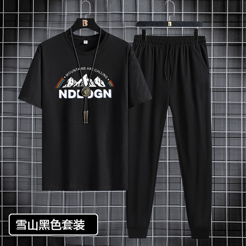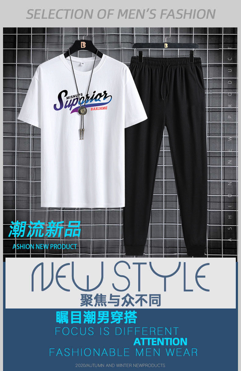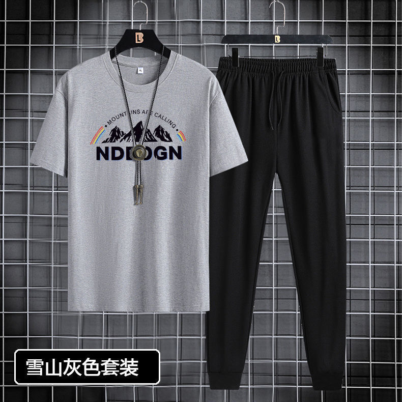 반팔 긴바지 세트 남성용 2024 청소년 남성 스포츠 캐주얼 라운드넥 프린트 투피스 세트 한국 스타일 캐주얼스토어 가기
