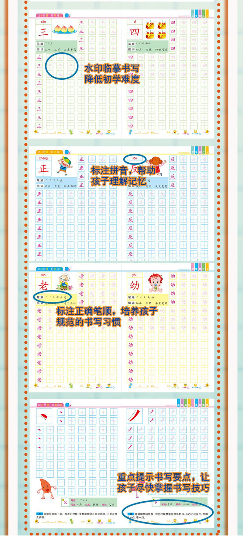 간단하고 신선한 연습 카피북 초등학교 학생 1 획 병음 디지털 서도 추적 레드 카피 아동 필기 책스토어 가기