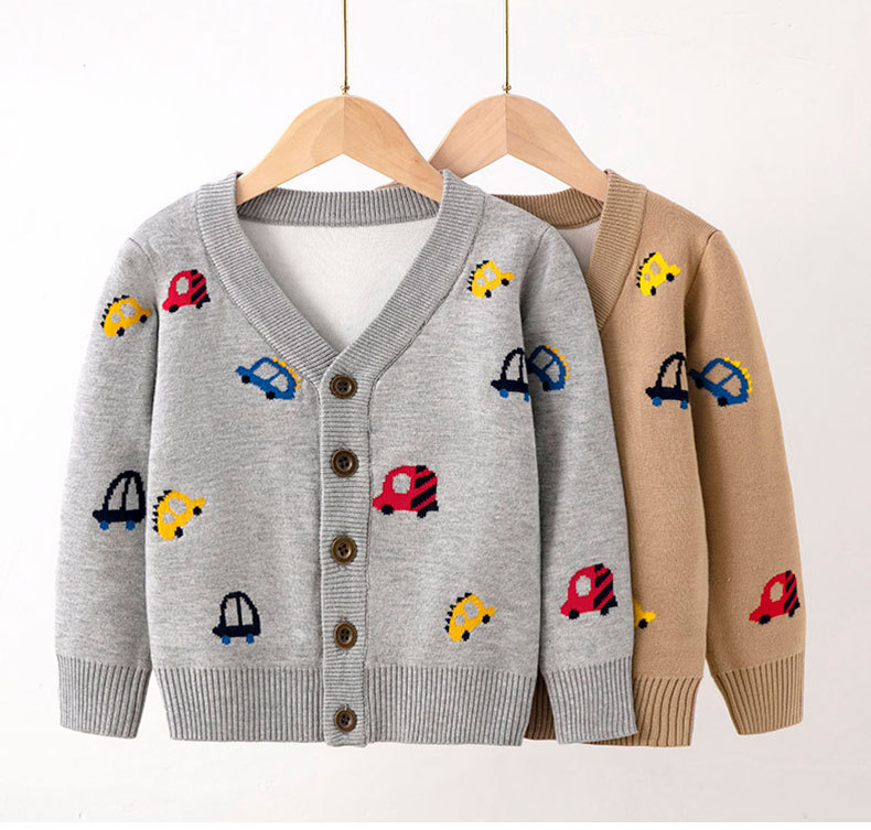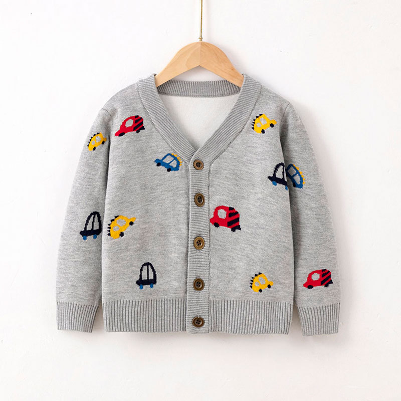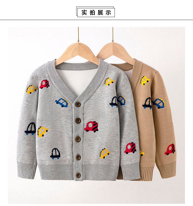 새로운 봄, 가을 유럽과 미국 어린이 스웨터 재킷 만화 자동차 소년 아기 니트 카디건 아동 의류의 공장 직접 판매