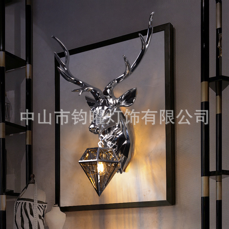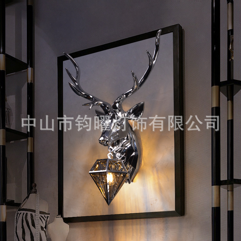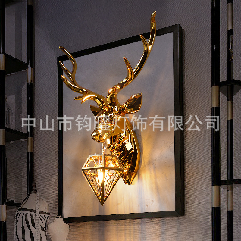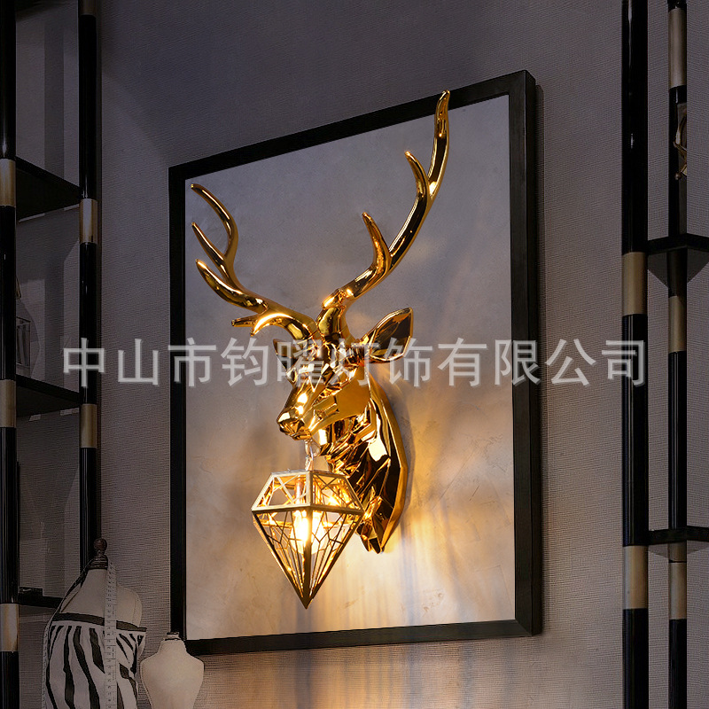 행운의 사슴 머리 벽 램프 북유럽 거실 TV 배경 벽 침대 옆 개인 창조적 인 사슴 머리 벽 램프 장식