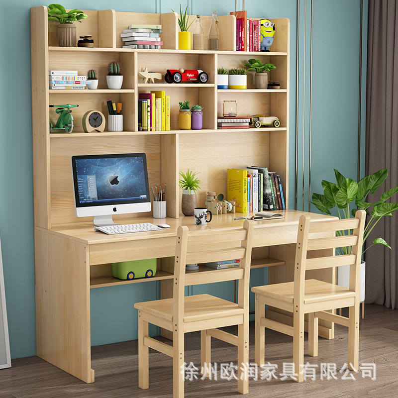 단단한 나무 공부 테이블과 책장 조합 가정용 통합 간단한 현대 데스크탑 학생 책장이있는 이중 책상스토어 가기