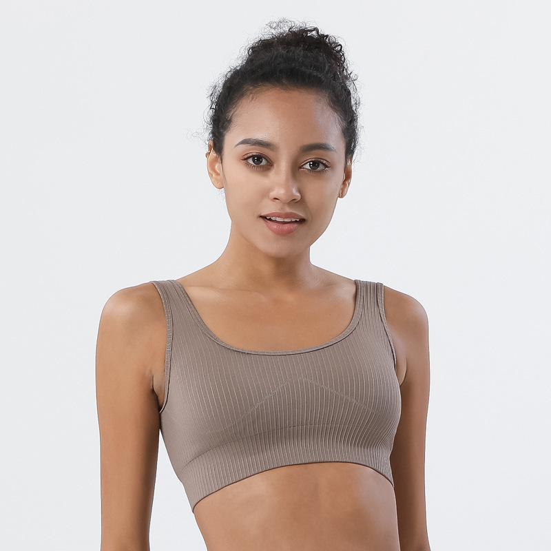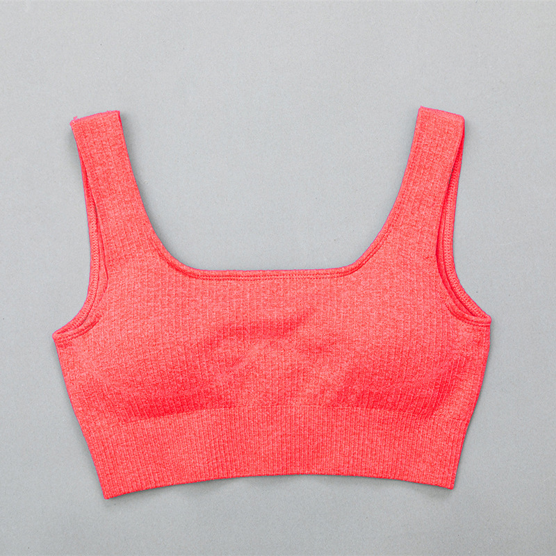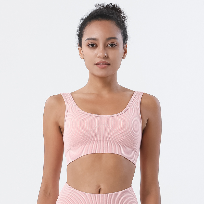 유럽과 미국 원활한 니트 요가 조끼 단색 실행 피트니스 스포츠 속옷 충격 방지 U 자형 브래지어 스레드 섹시