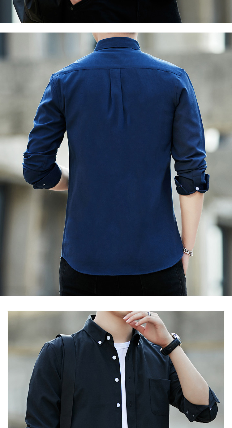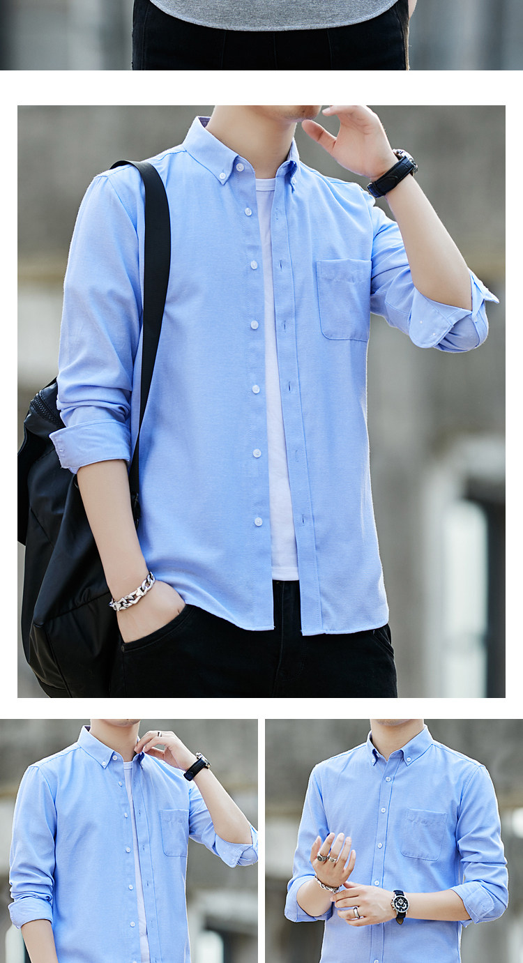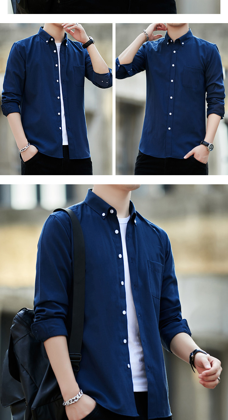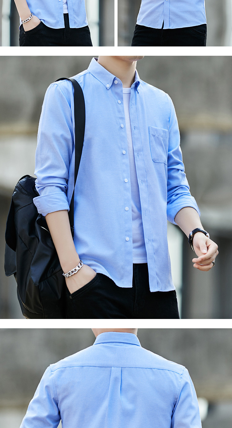 2023 봄과 가을 새로운 패션 남성용 옥스포드 셔츠 청소년 슬림 단색 긴팔 셔츠 이베이 도매스토어 가기