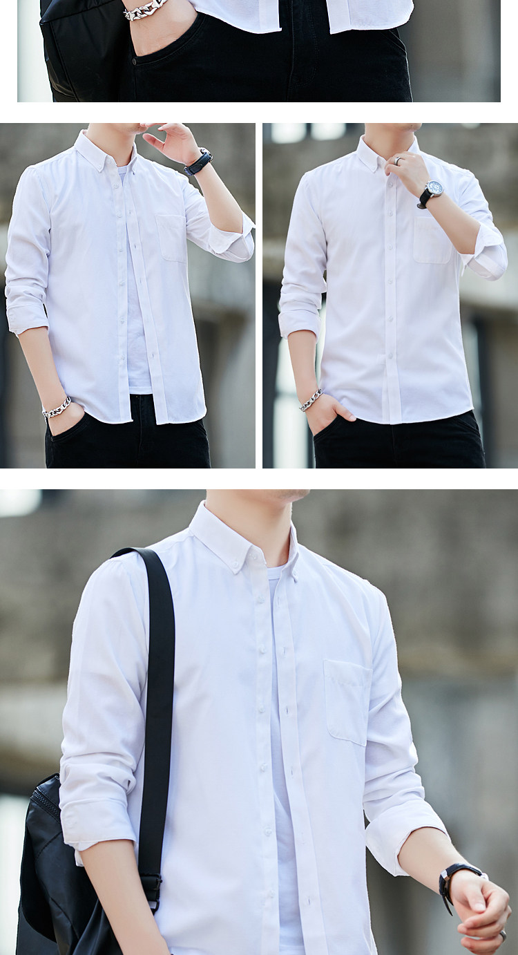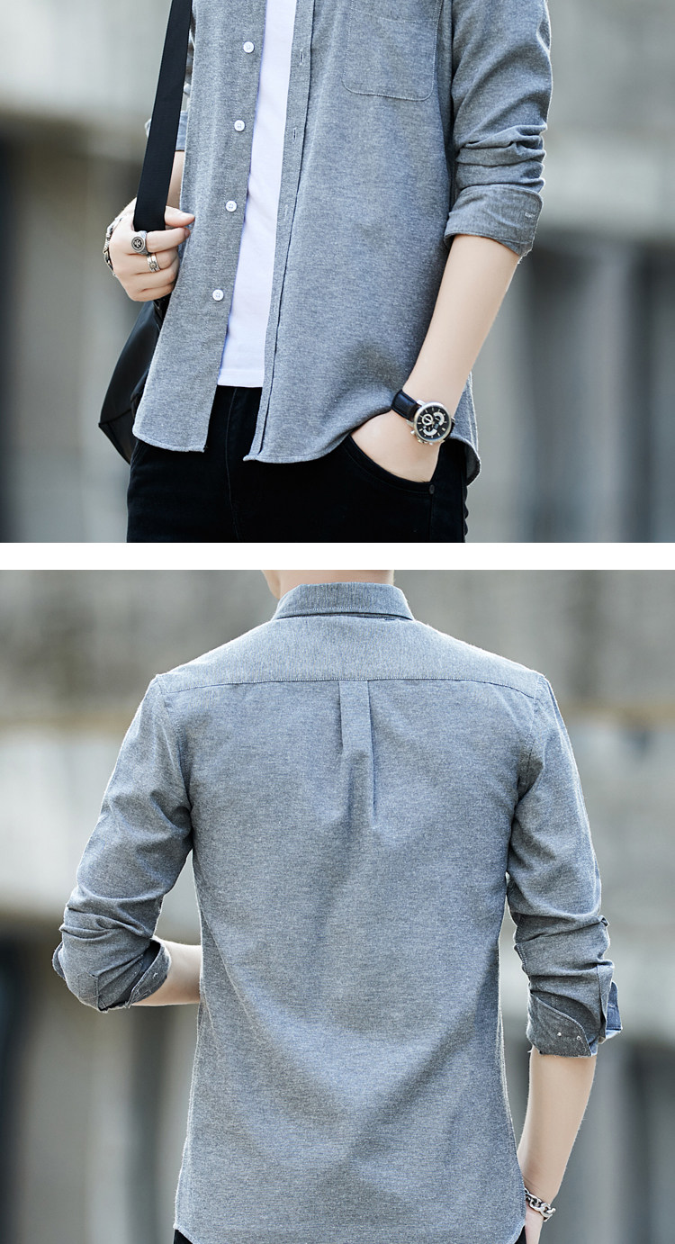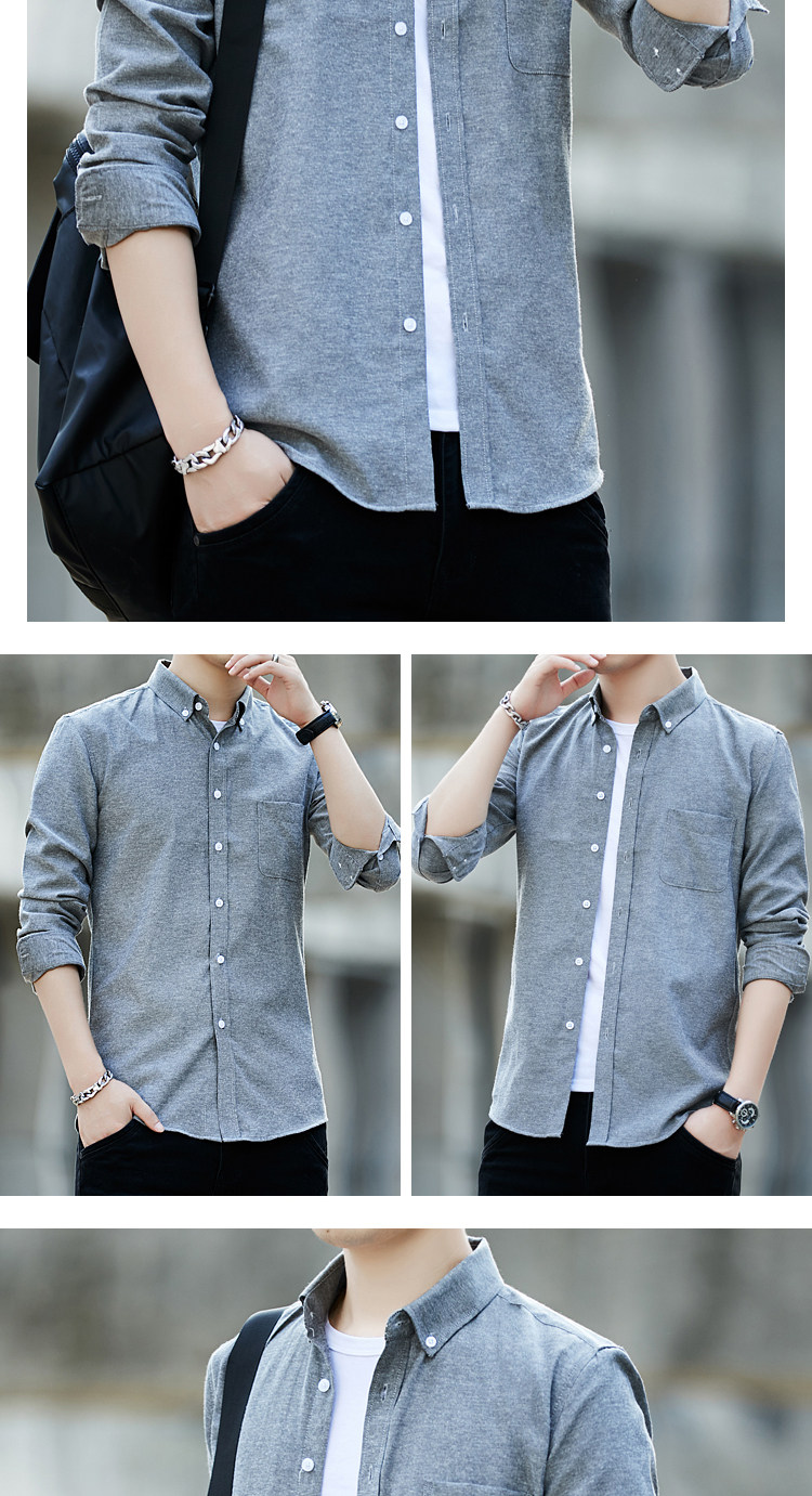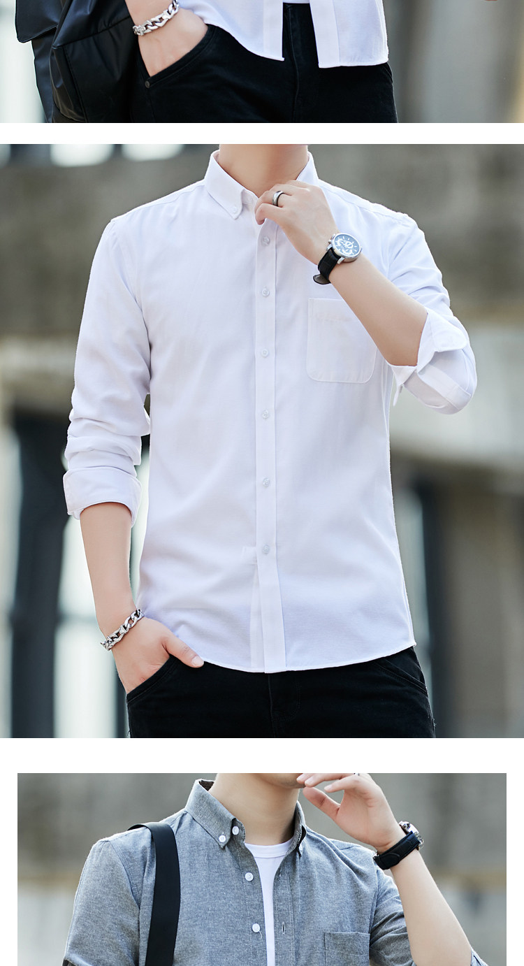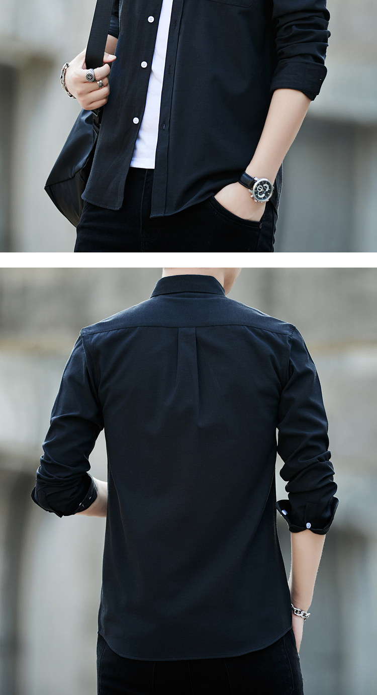 2023 봄과 가을 새로운 패션 남성용 옥스포드 셔츠 청소년 슬림 단색 긴팔 셔츠 이베이 도매스토어 가기