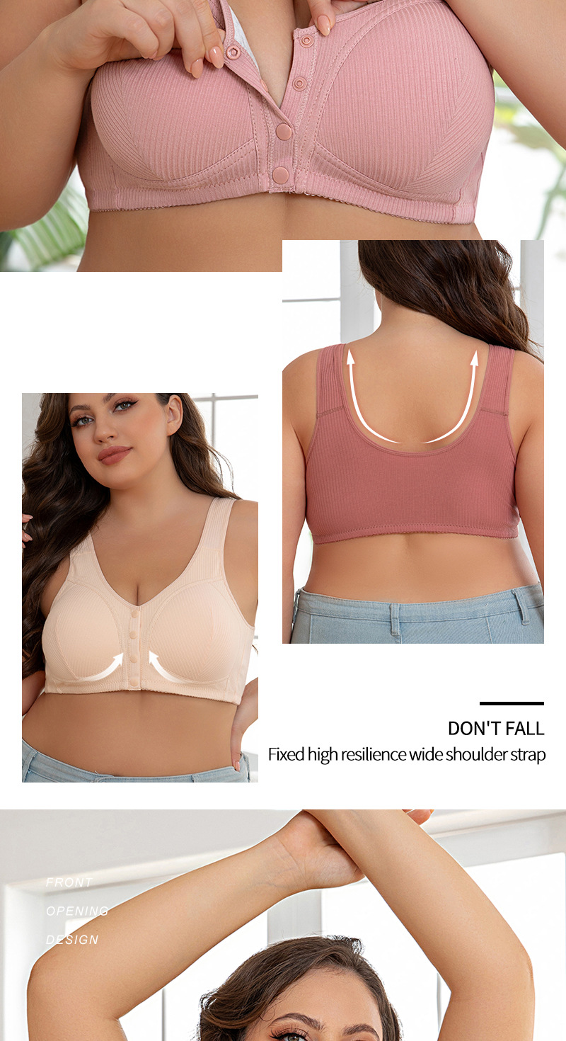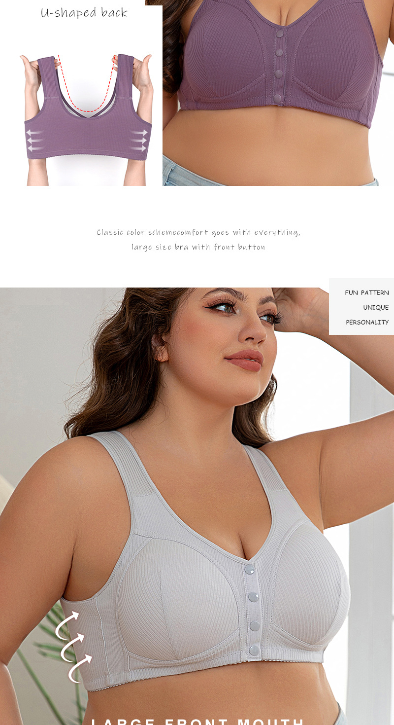 새로운 스타일의 스레드 천 순면 앞 버튼 속옷 여성 조끼 스타일 창의적인 중년 및 노인 대형 와이어 프리 브래지어