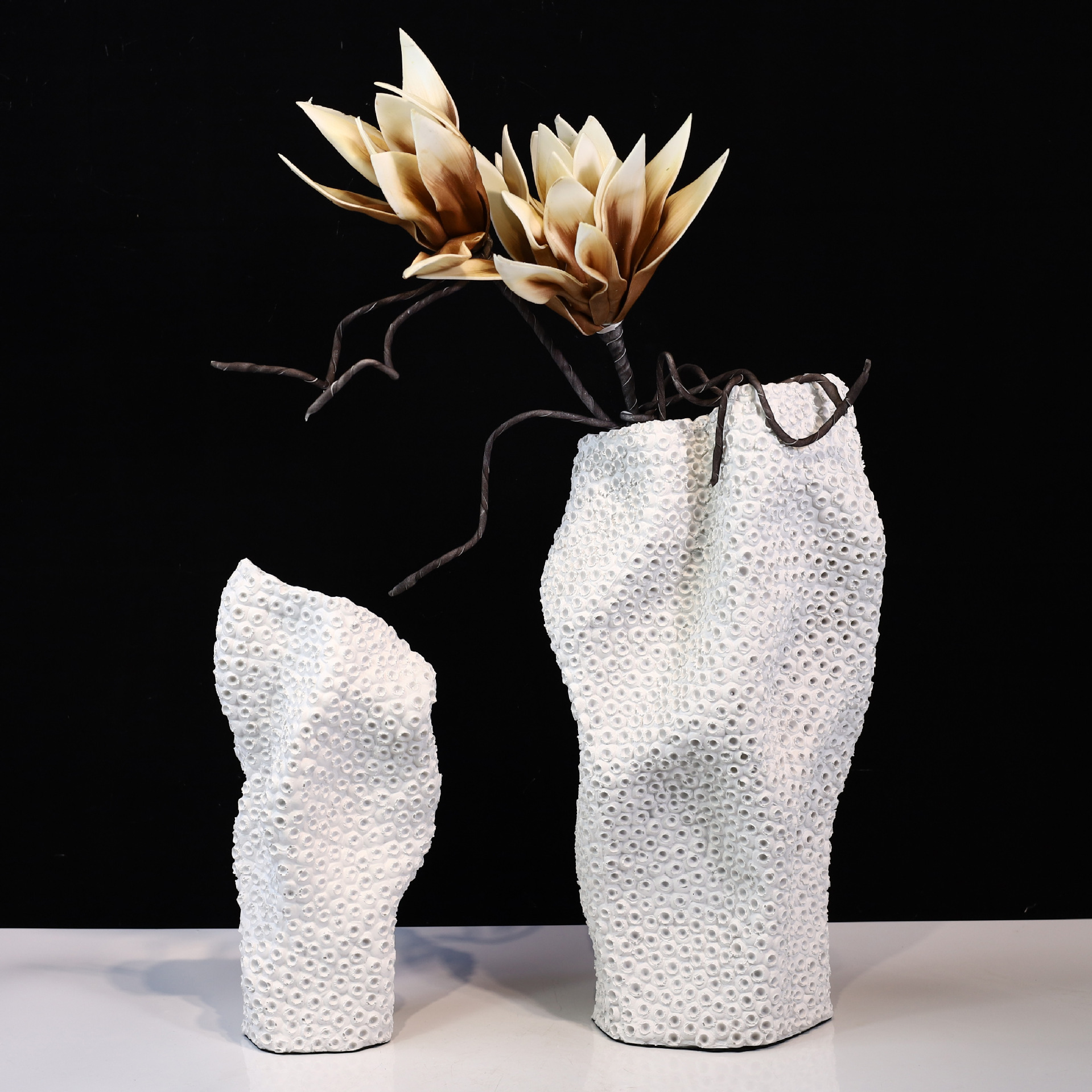 2021 새로운 현대 심플 라이트 럭셔리 꽃병 거실 꽃 삽입물 판매 사무실 모델 룸 부드러운 수지 꽃병