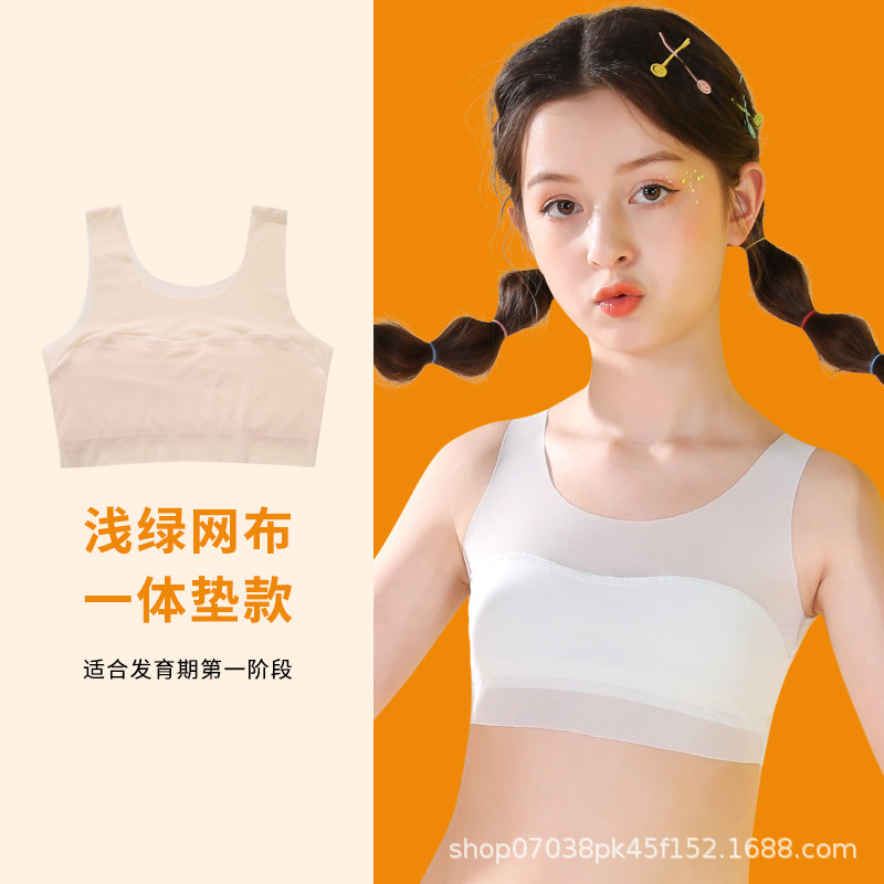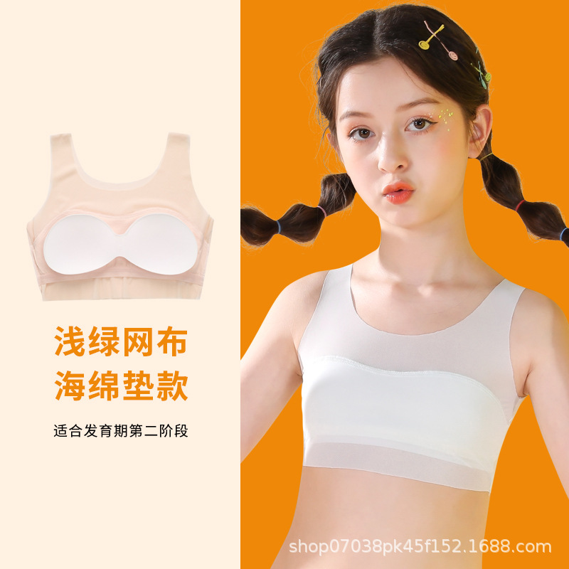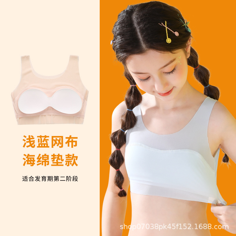 초등학생을위한 여아 발달 속옷 중학교 학생 탄성 와이드 숄더 스트랩 더블 레이어 안티 범프 브라 소녀를위한 작은 조끼스토어 가기
