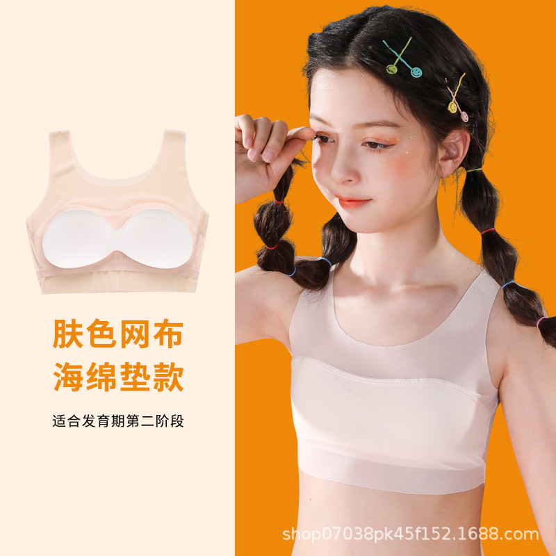 초등학생을위한 여아 발달 속옷 중학교 학생 탄성 와이드 숄더 스트랩 더블 레이어 안티 범프 브라 소녀를위한 작은 조끼