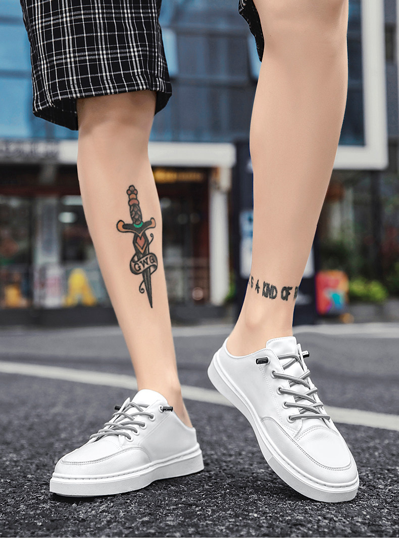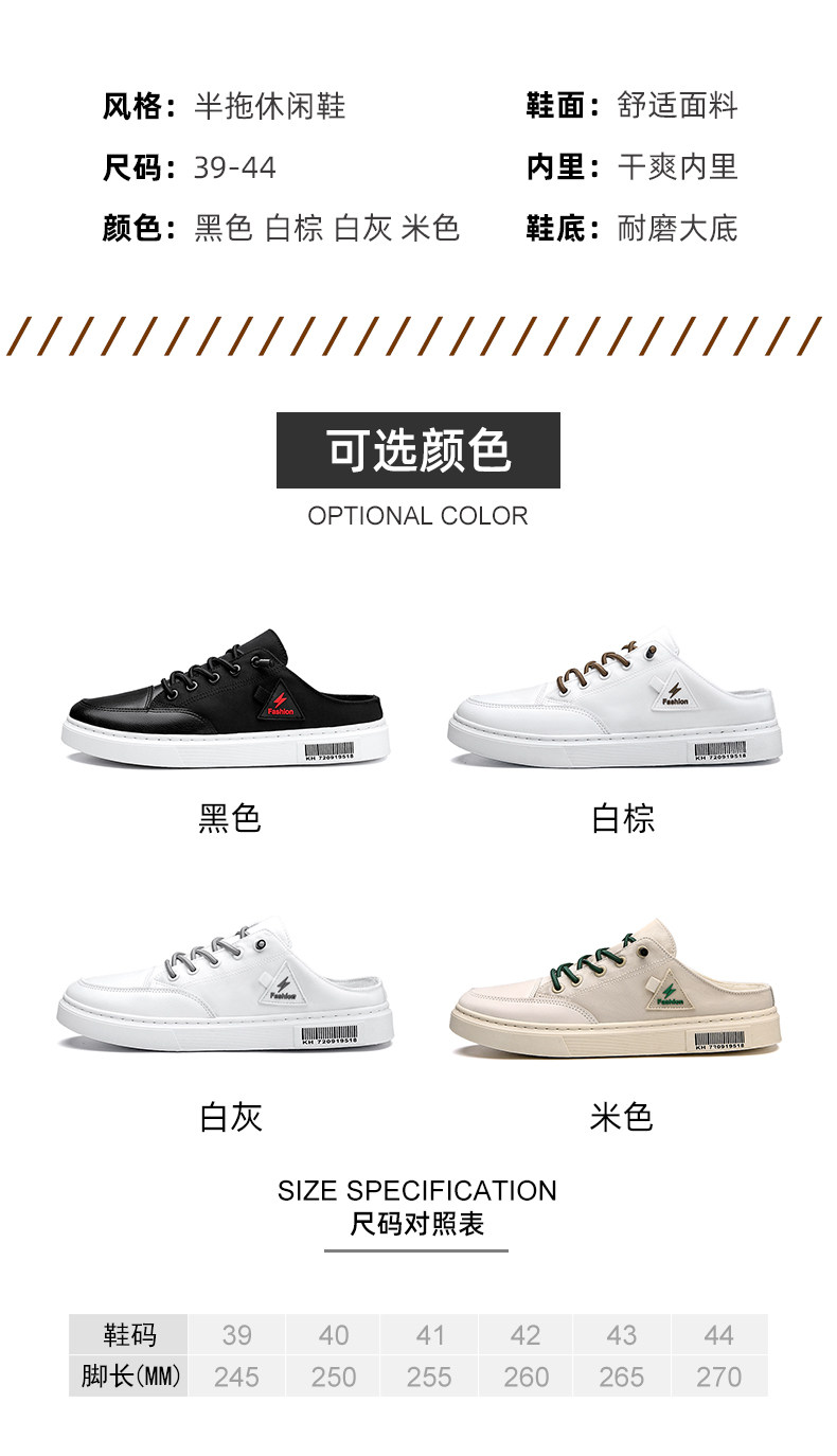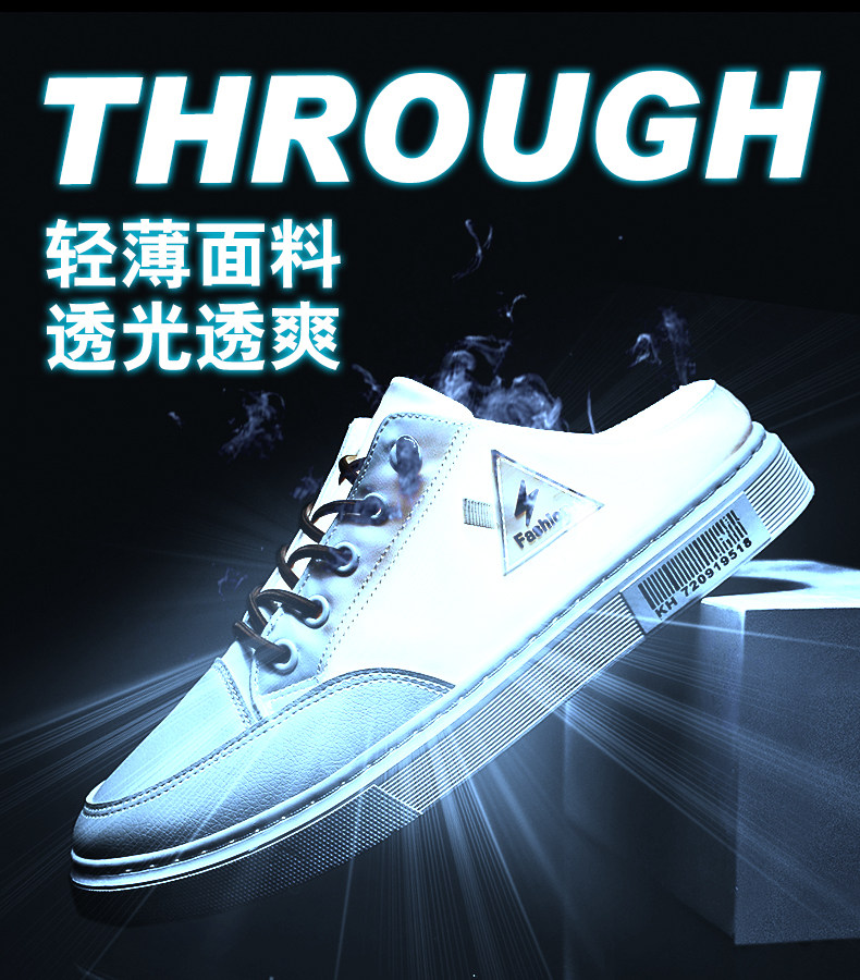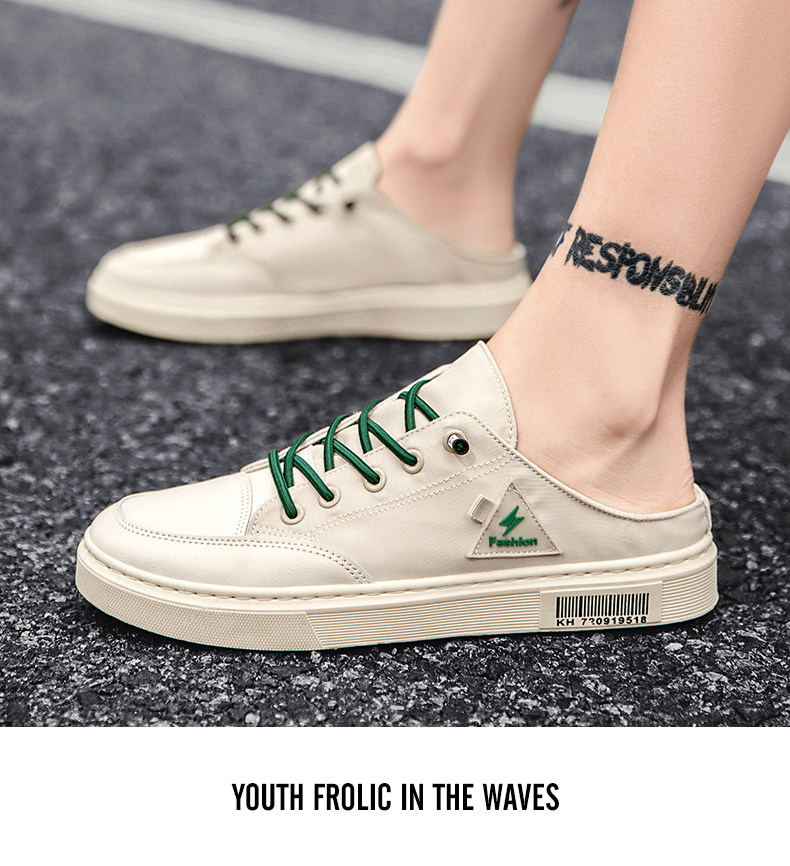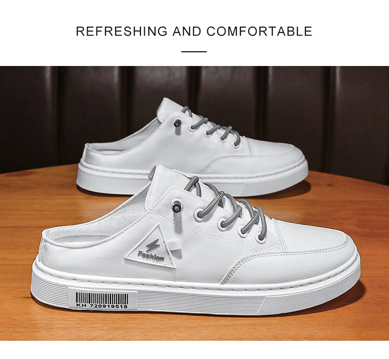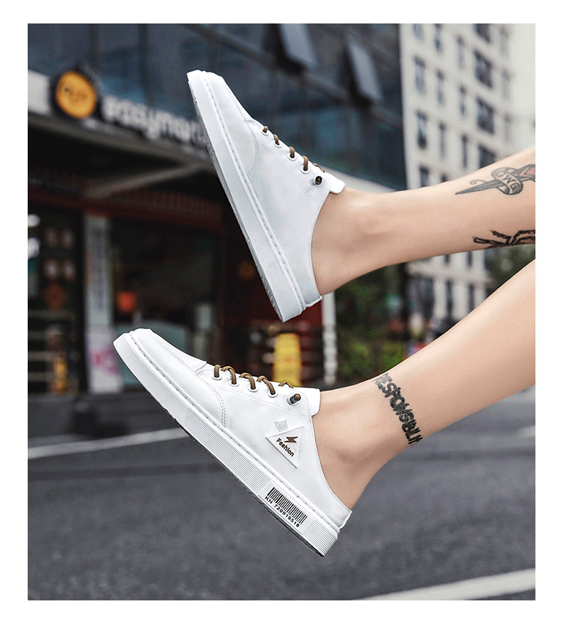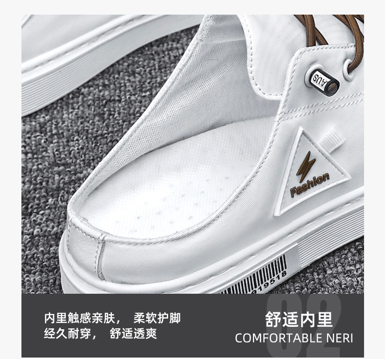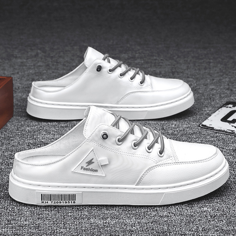 게으른 슬립온 캔버스 신발 남성용 여름 굽이없는 Baotou 샌들 사이버 연예인 슬리퍼 트렌디 화이트 하프 슬리퍼