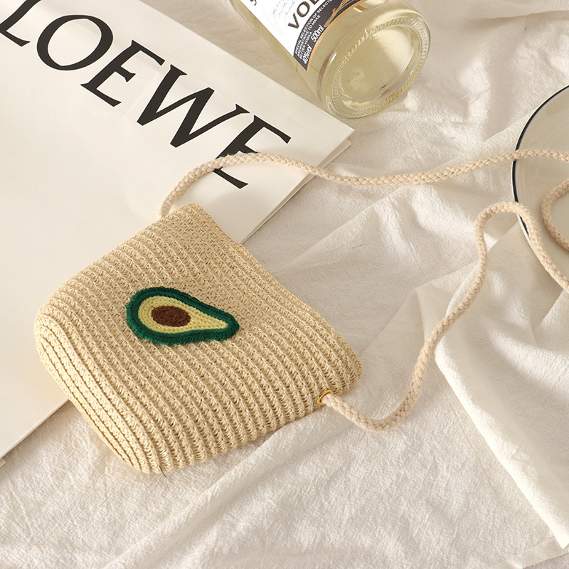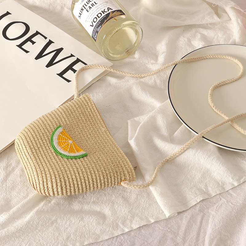 크로스 보더 새 가방 봄과 여름 공주 동전 지갑 수제 짠 어린이 밀짚 가방 미니 과일 지퍼 가방 크로스 바디 백스토어 가기