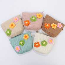 韩版儿童春夏季多色毛线花朵草编小包包户外游玩厂家直营单肩包