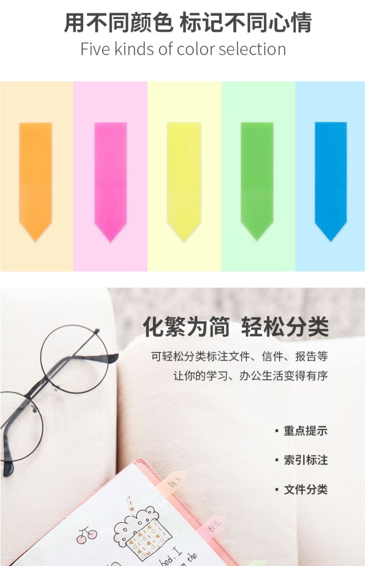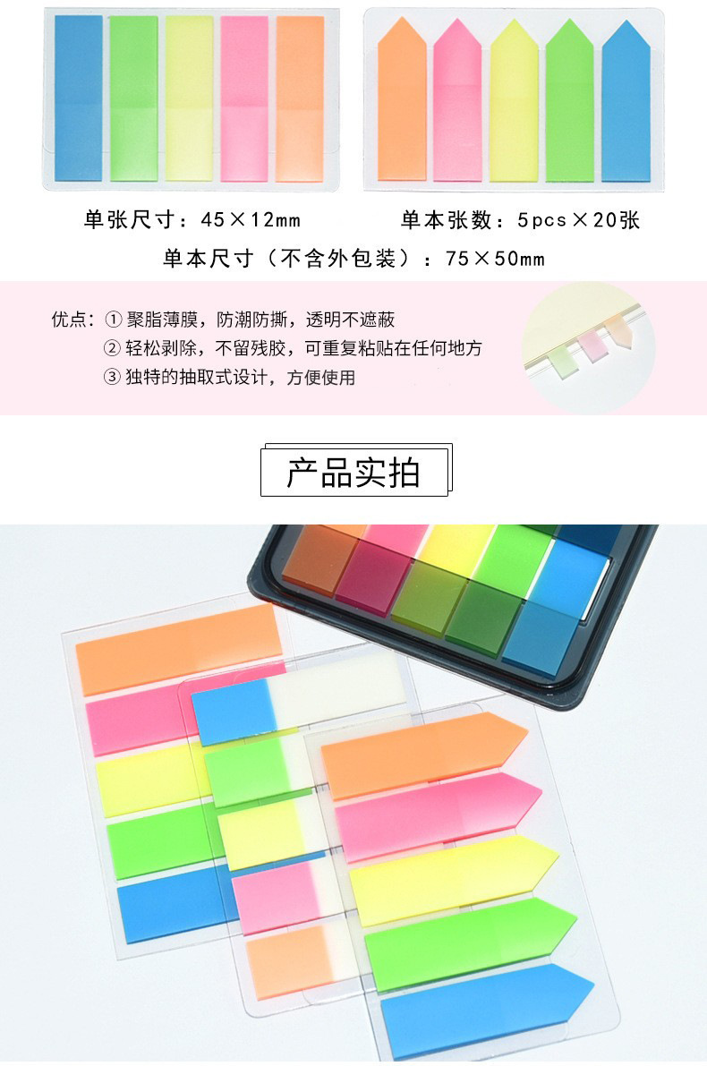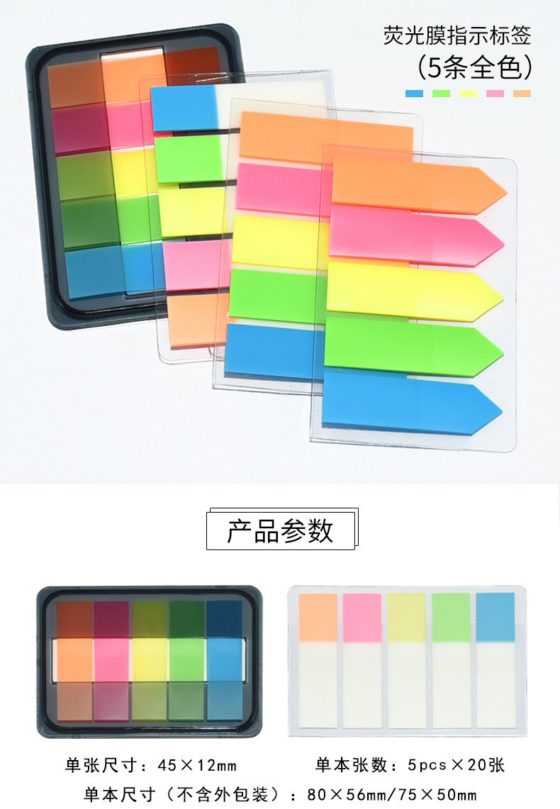 인덱스 스티커 PET 포스트잇 형광 라벨 스티커 컬러 화살표 인스 스타일 자가 접착 마킹 스트립 방수 학생용