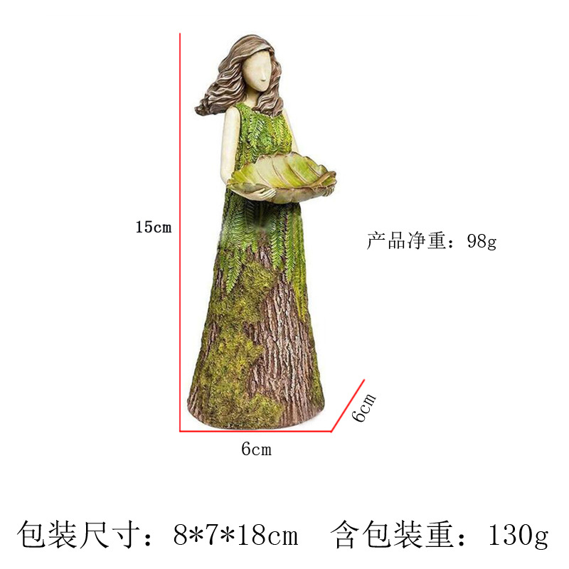 동화 숲 소녀 새 피더 수지 공예 야외 정원 동상 안뜰 잔디 장식 수지 장식품