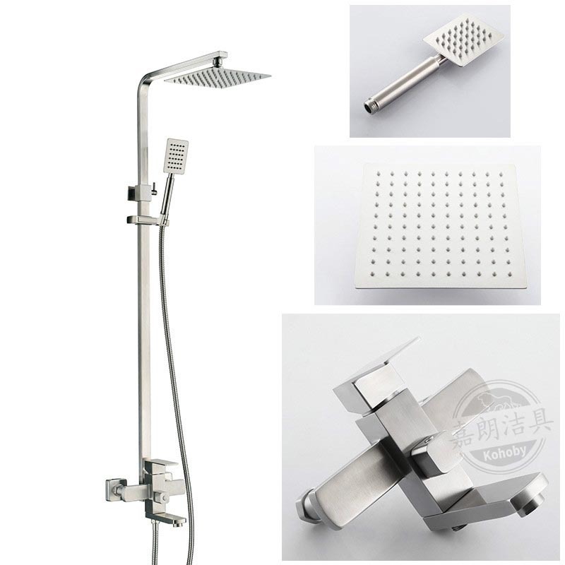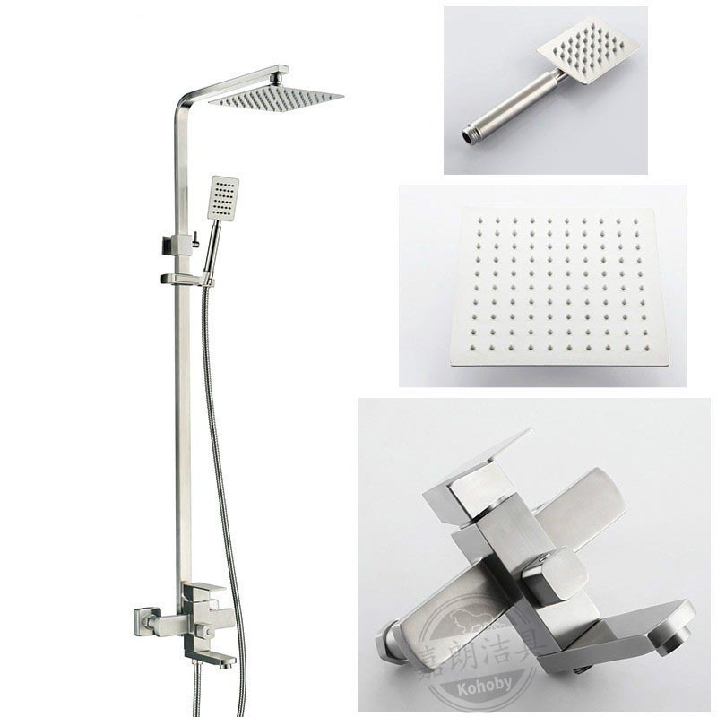 공장 직접 공급 사각형 304 스테인레스 스틸 솔질 샤워 세트 아래 물 혼합 밸브 회전 수도꼭지스토어 가기