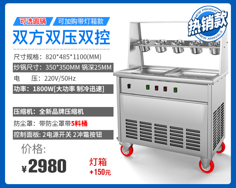 • 더블 라운드 팬 튀긴 요구르트 기계 (단일 압력 + 스티커)