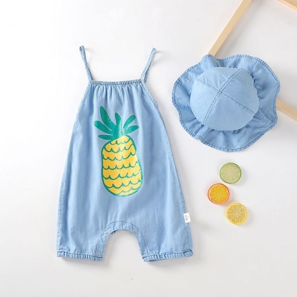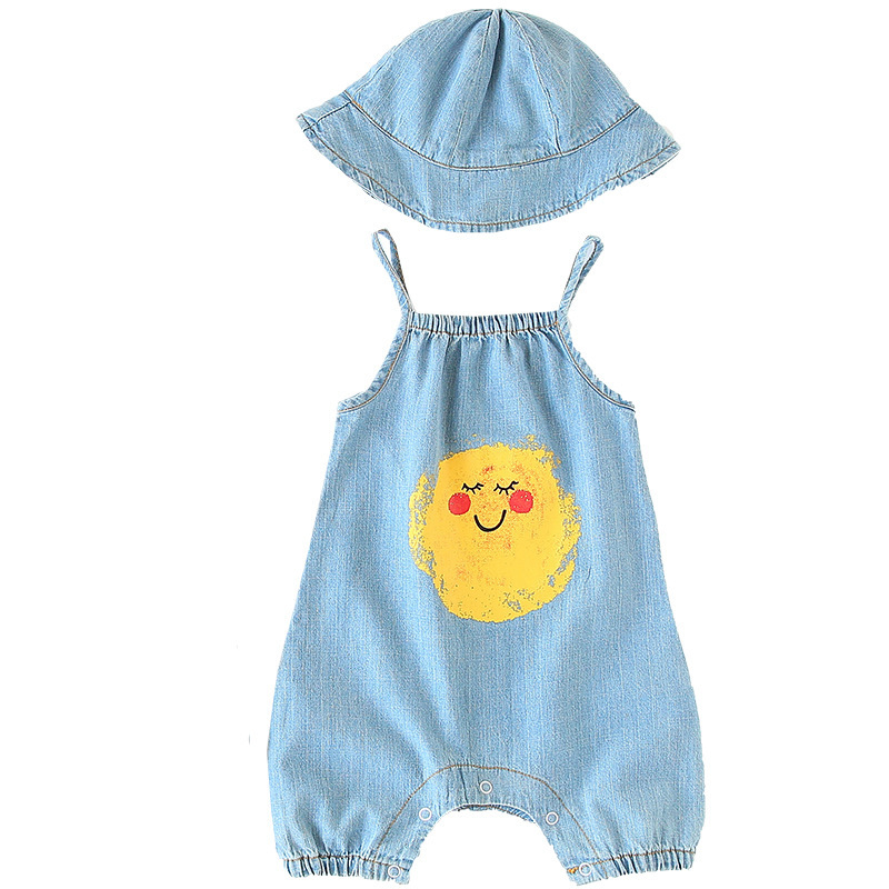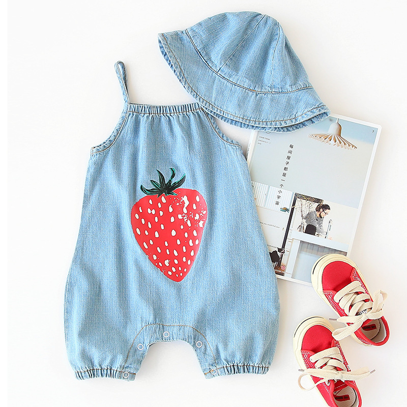 아기의 캐미솔 가방 방귀 옷 아기 소녀의 귀여운 만화 부드러운 데님 멜빵 바지 얇은 인터넷 축하 옷 여름 옷스토어 가기