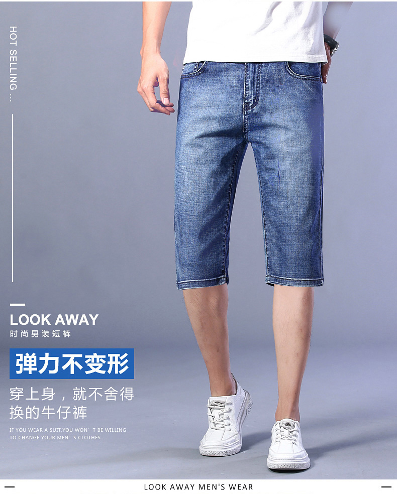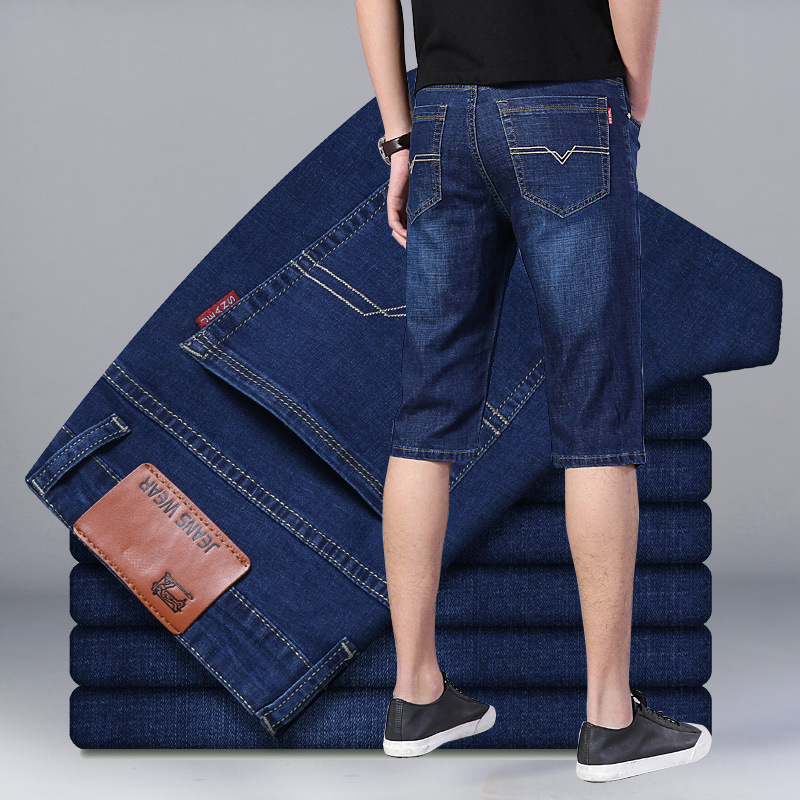 초박형 데님 반바지 남성 여름 루즈한 아우터웨어 5점 중간 바지 7점 바지 스트레이트 캐주얼 바지스토어 가기