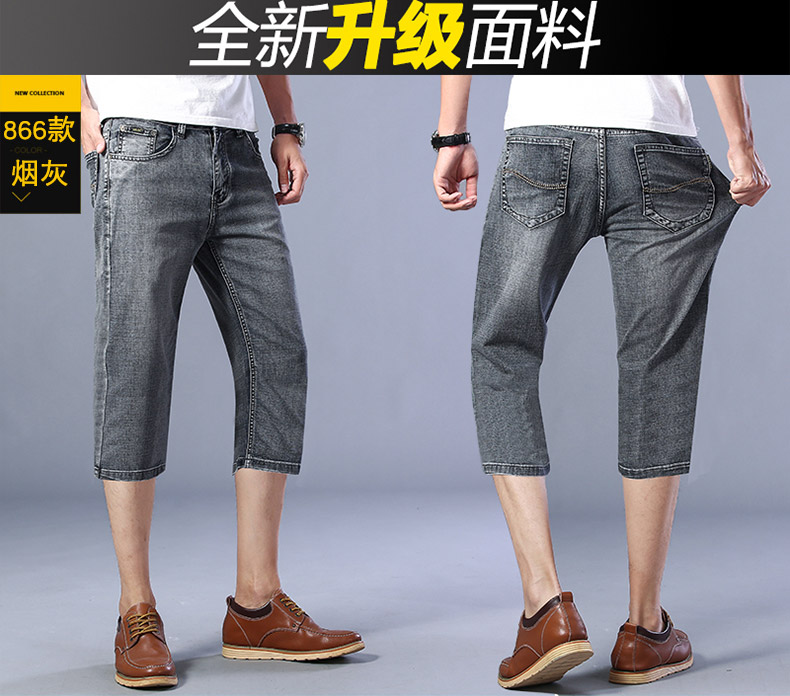 초박형 데님 반바지 남성 여름 루즈한 아우터웨어 5점 중간 바지 7점 바지 스트레이트 캐주얼 바지