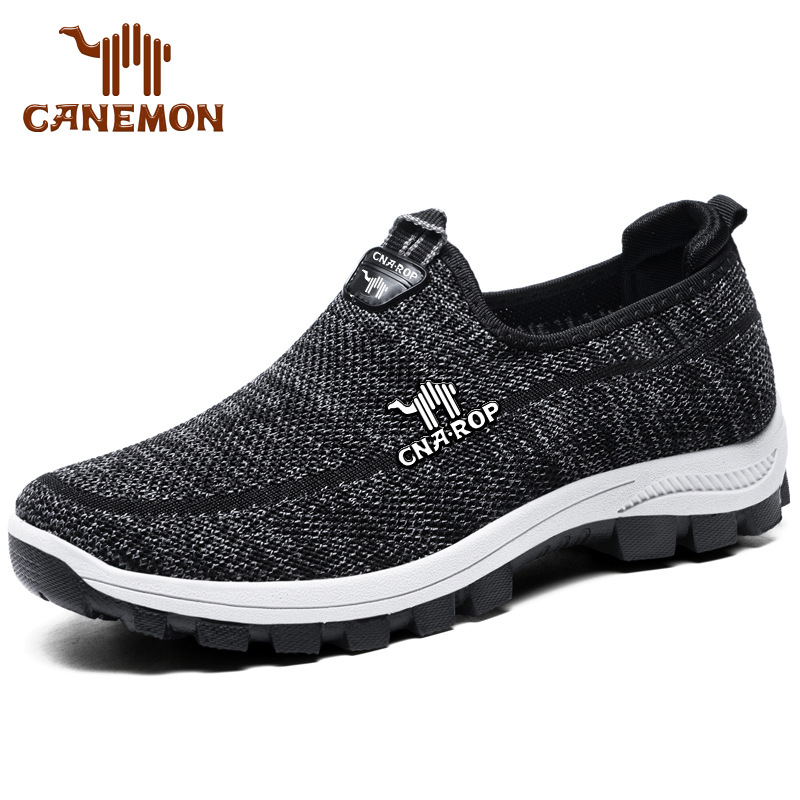런닝 슈즈 남성용 슬립 온 운동화 남성용 통기성 캐주얼 할로우 메쉬 슈즈 미끄럼 방지 소프트 하단 아빠 신발스토어 가기