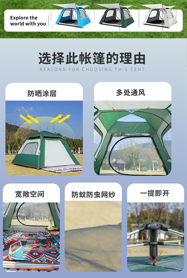 휴대용 야외 텐트 캠핑 두꺼운 방수 자동 접이식 야외 캠핑 비치 텐트 공장 도매스토어 가기