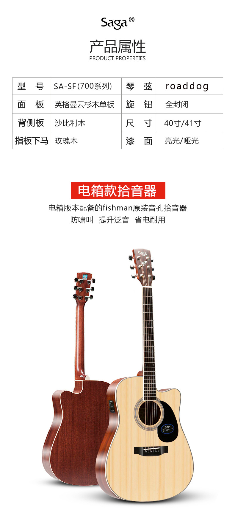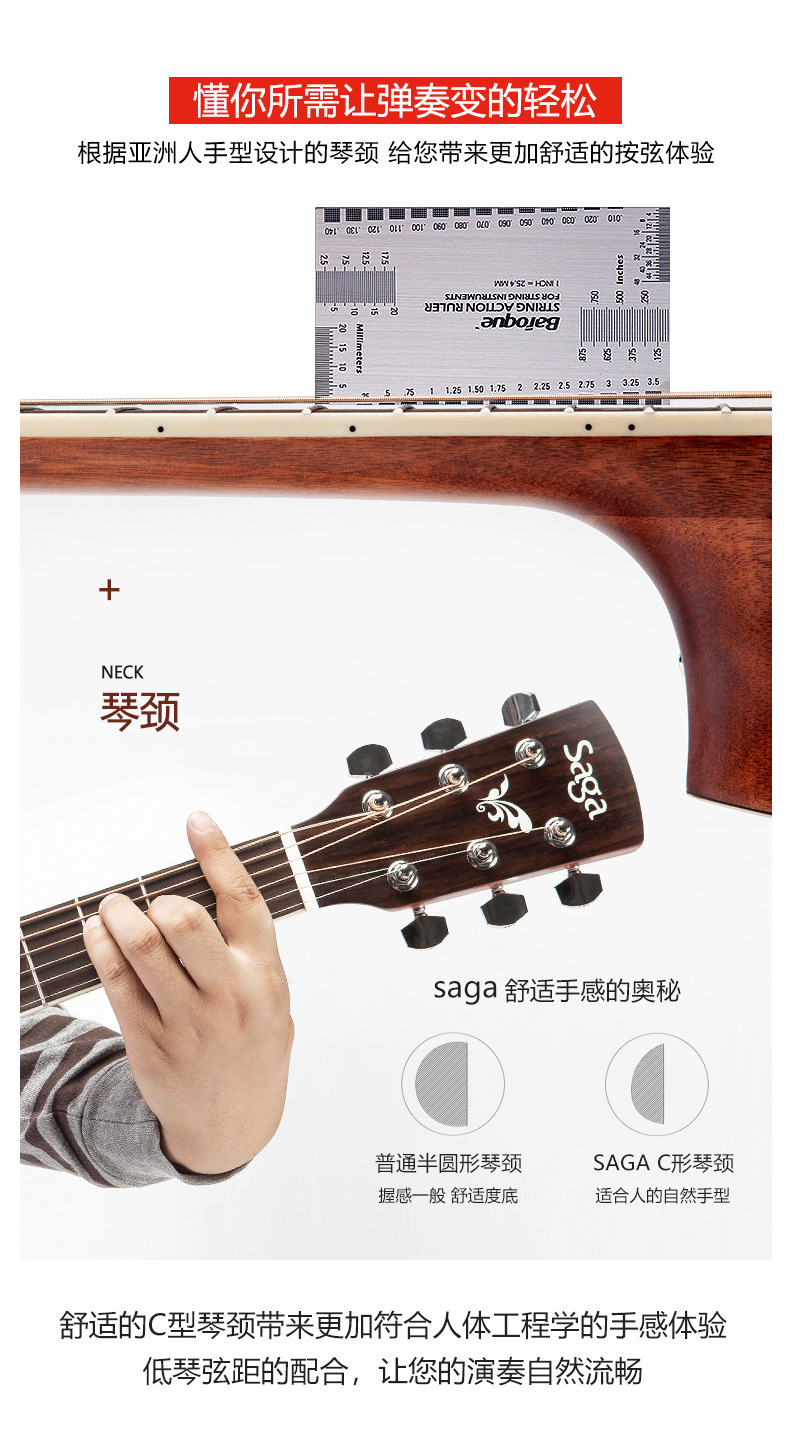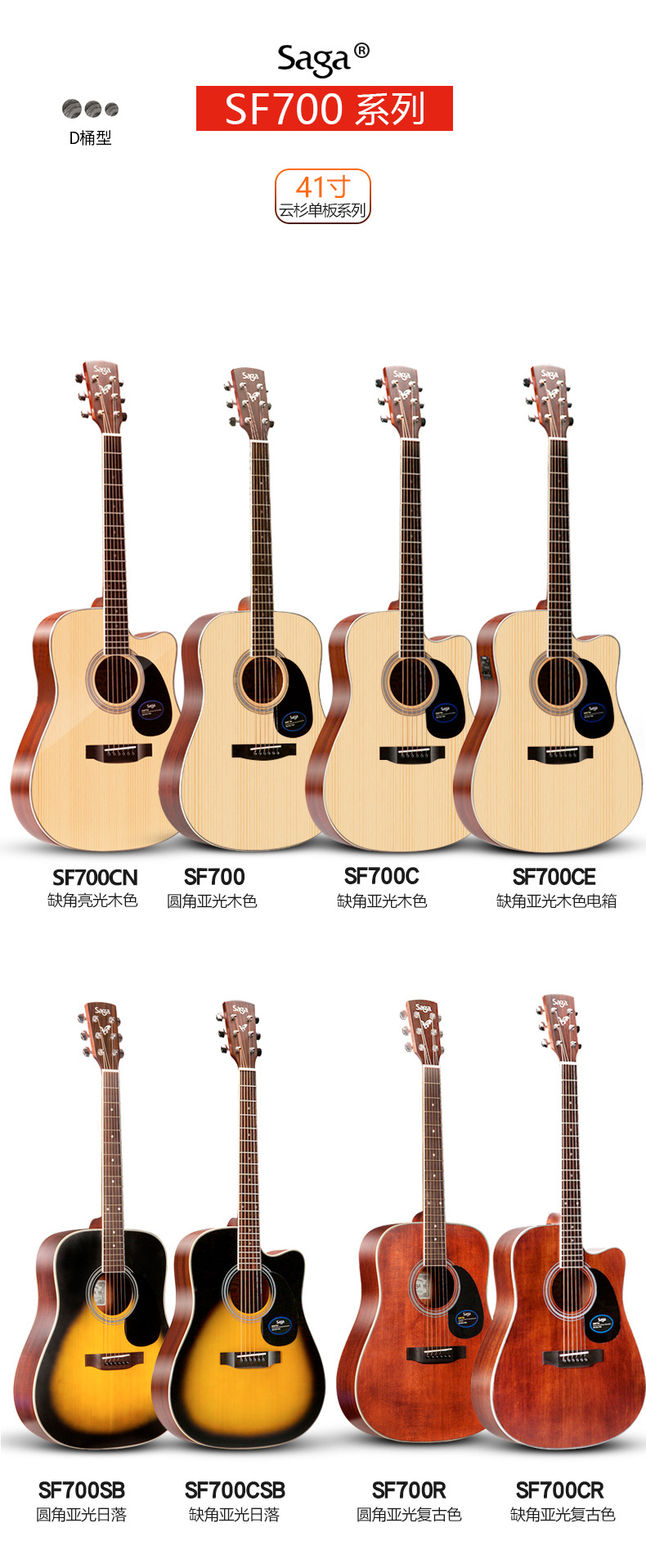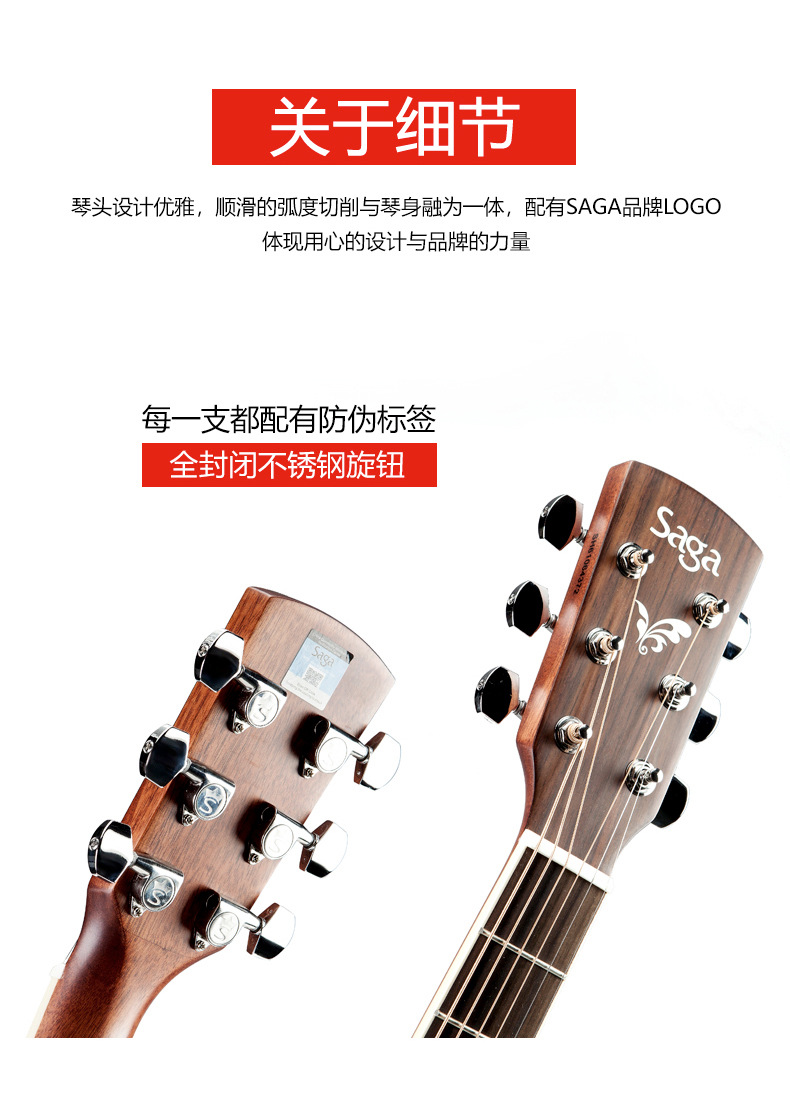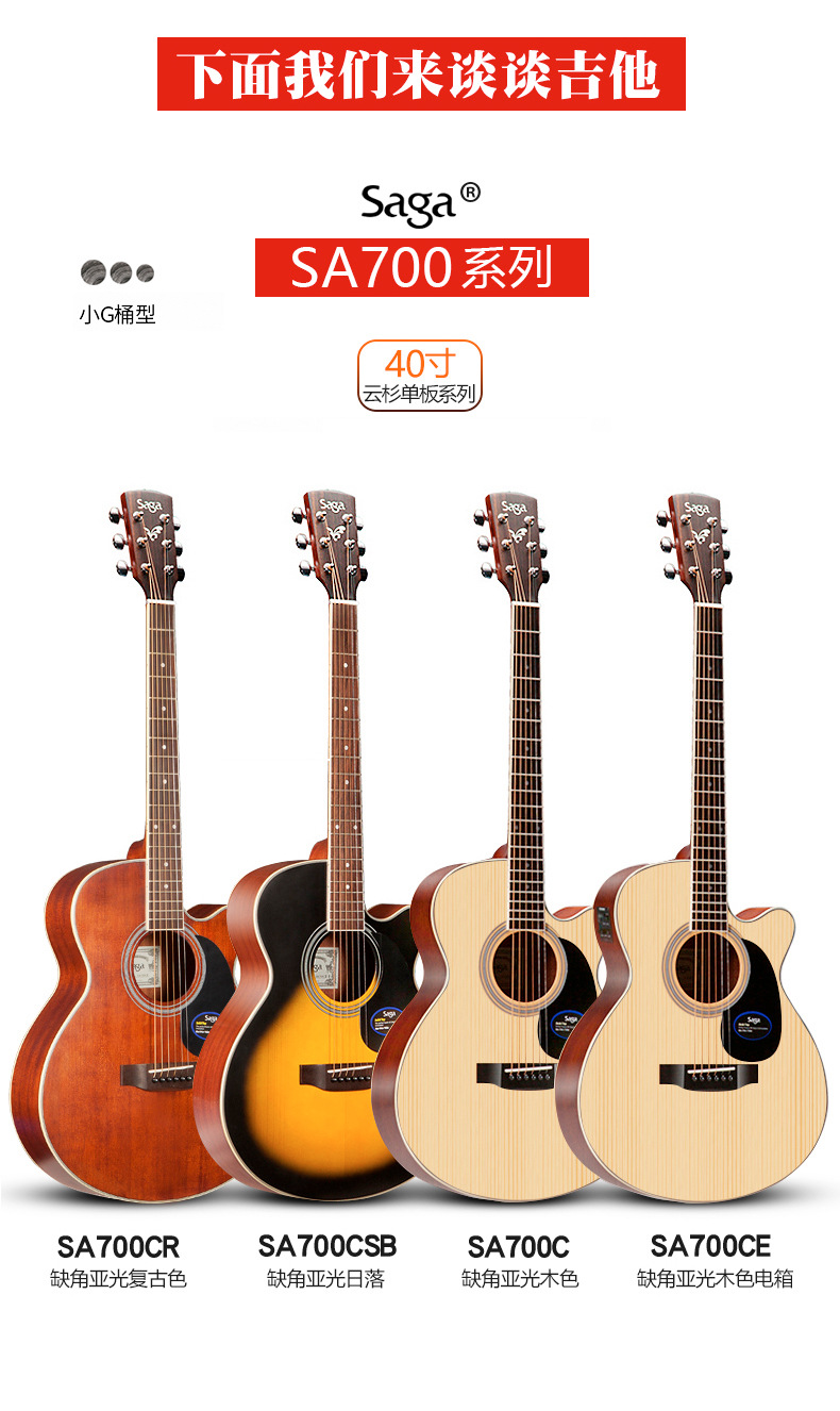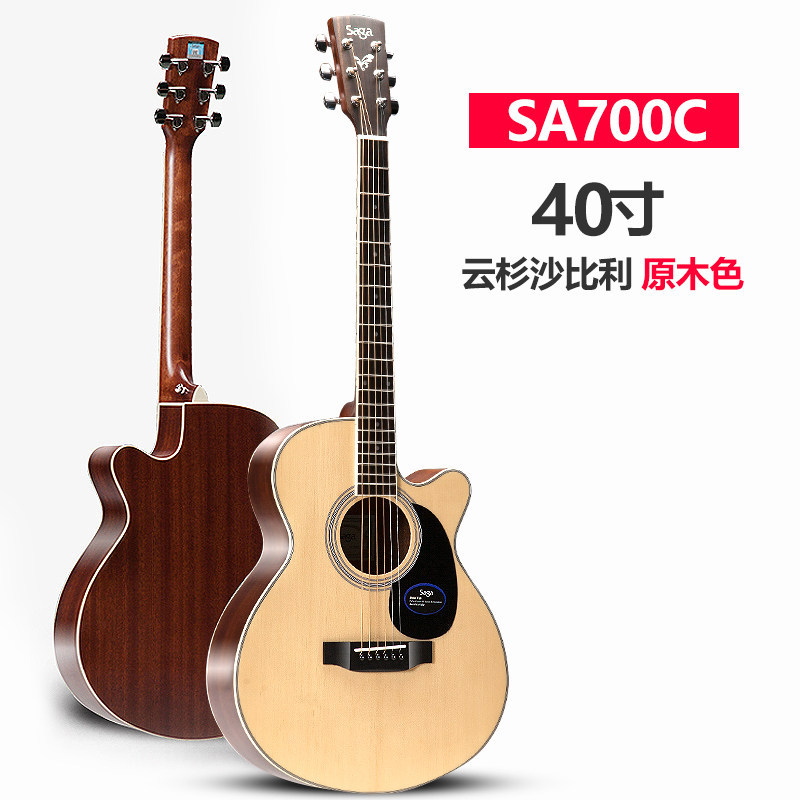 사가 사가 SF700C 베니어 민속 기타 남성과 여성 학생을위한 초보자 전기 상자에 둥근 누락 각도 나무 기타스토어 가기