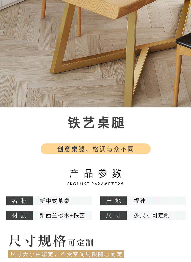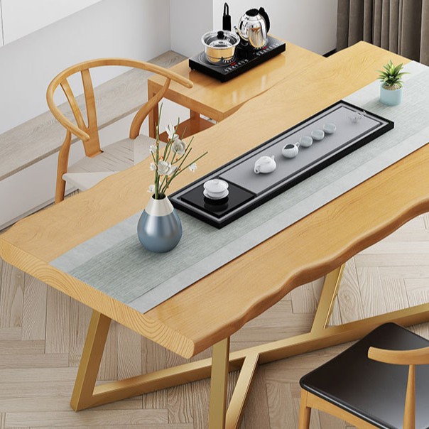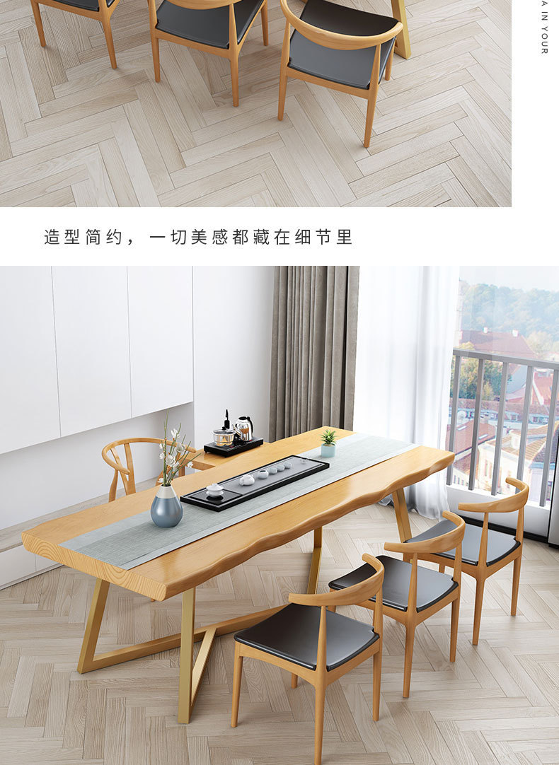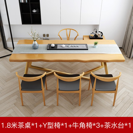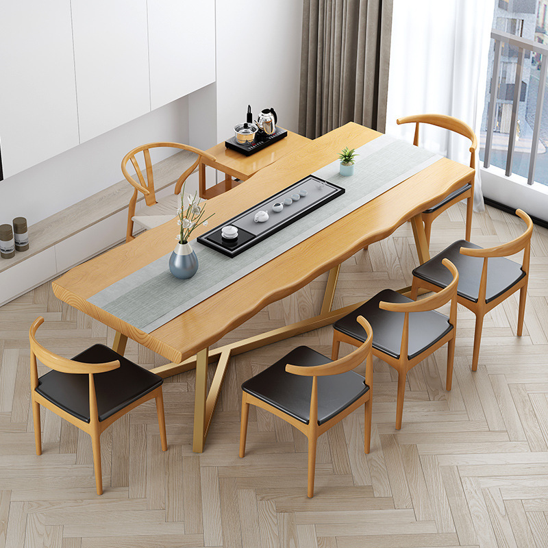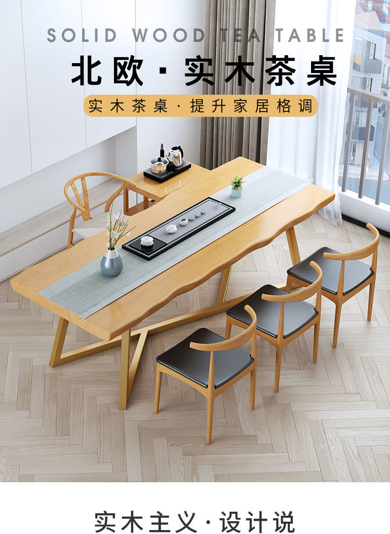 북유럽 간단한 단단한 나무 차 테이블 홈 거실 직사각형 티 테이블 리셉션 룸 철 캐주얼 테이블과 의자 조합