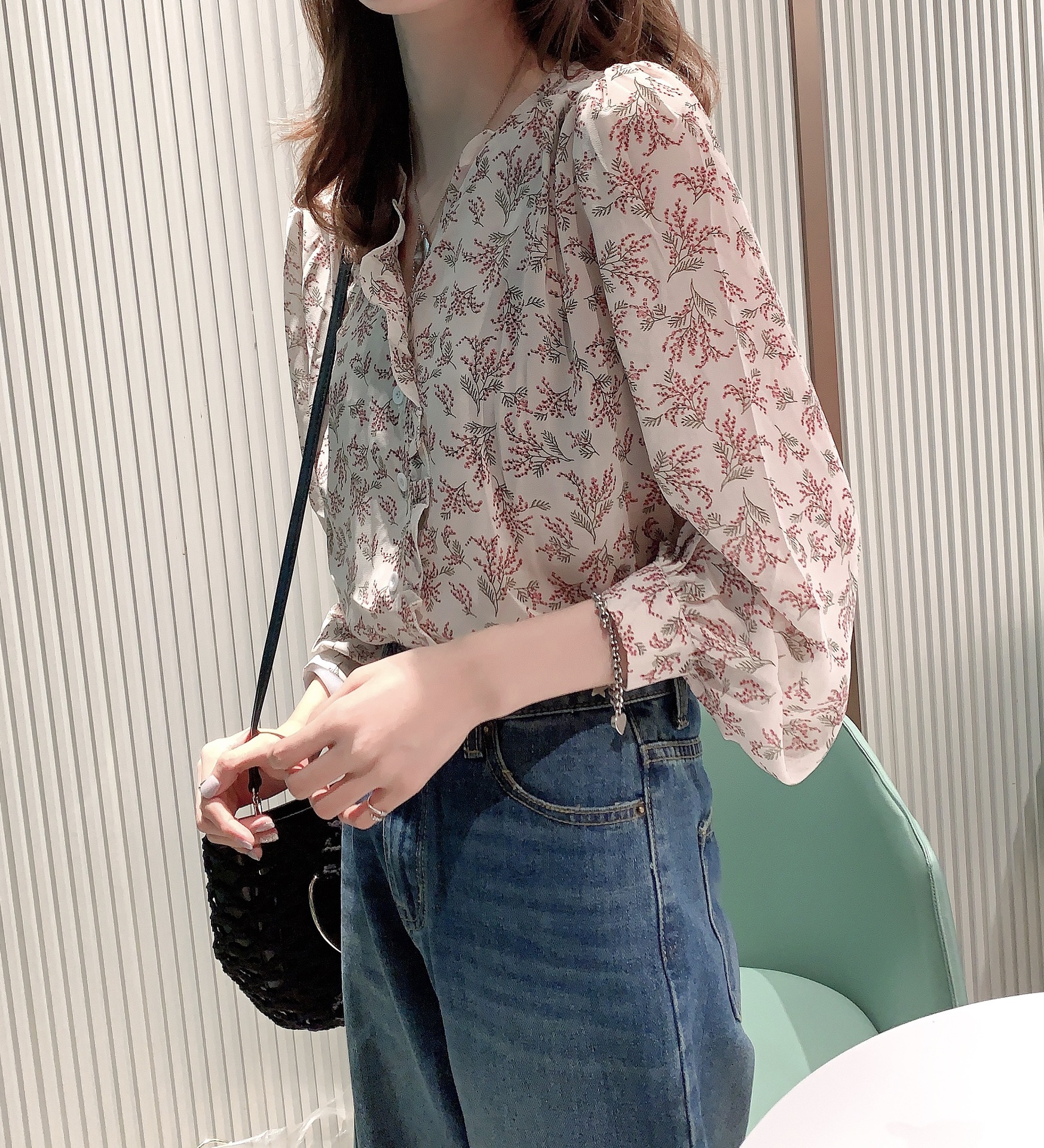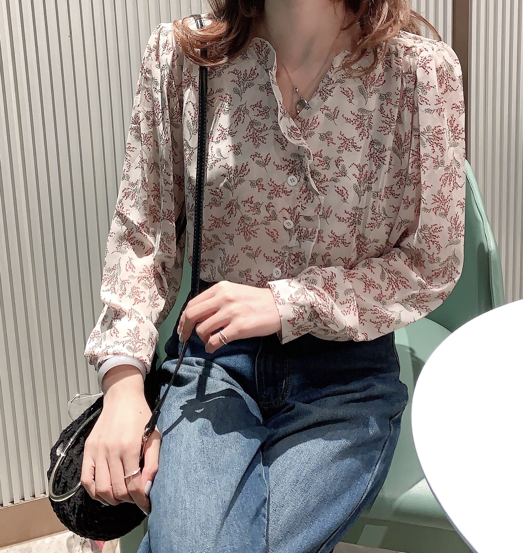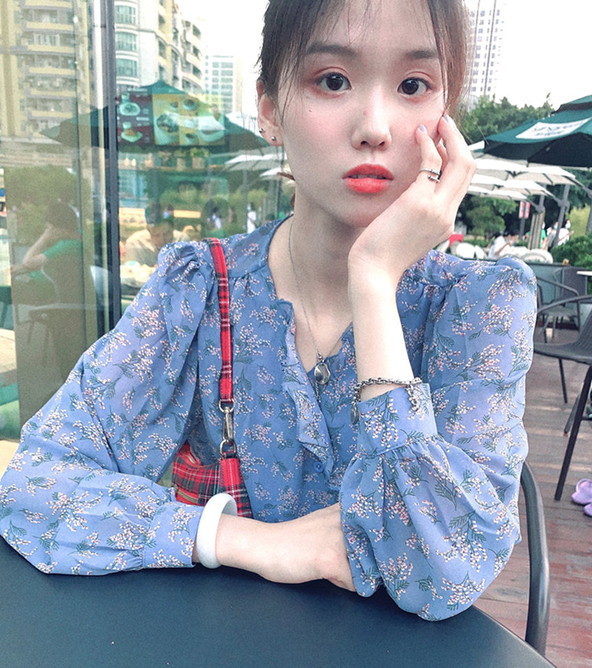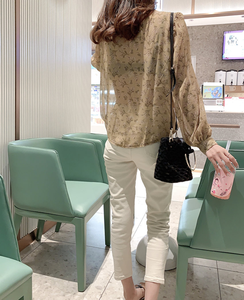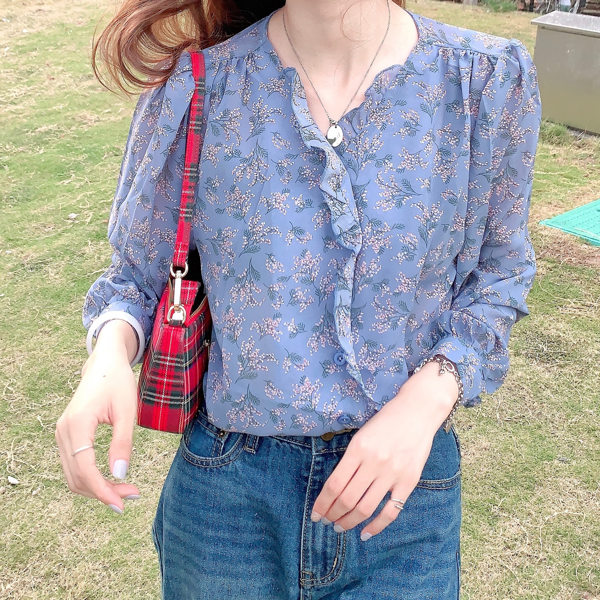 2 023 new 작은 셔츠 외국 스타일 부드러운 바람 꽃 쉬폰 셔츠 여성의 긴 소매 바닥 셔츠 버블 슬리브 셔츠의 한국판스토어 가기