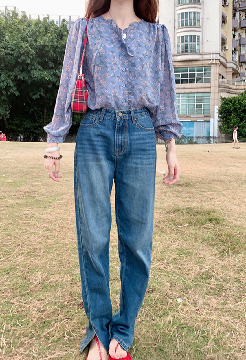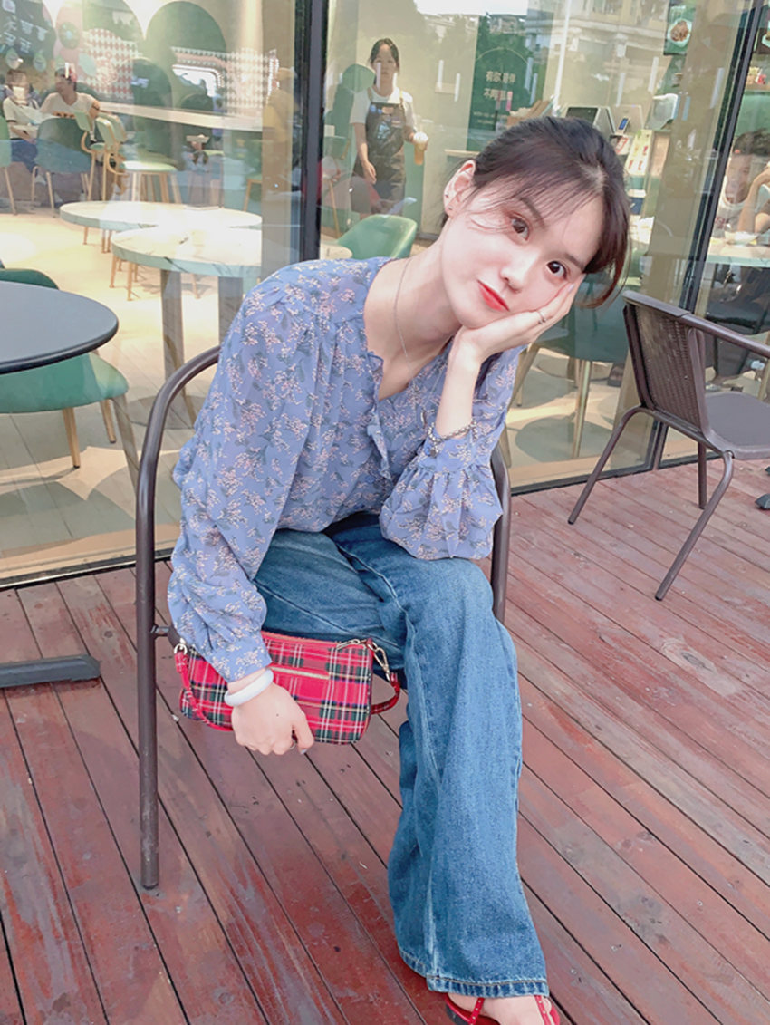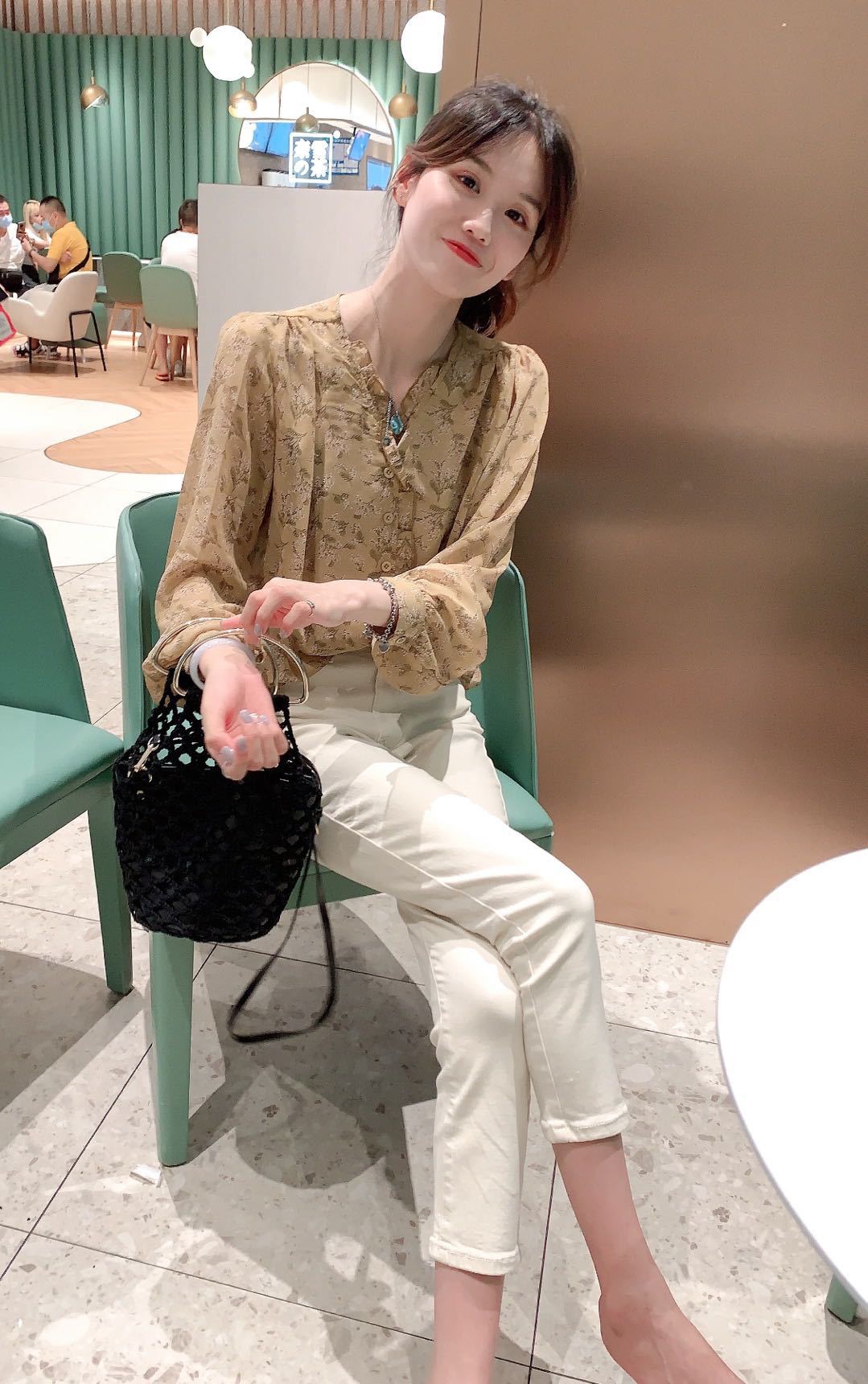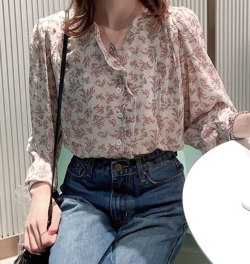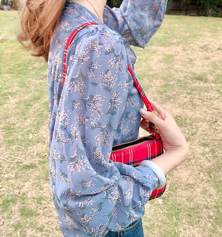 2 023 new 작은 셔츠 외국 스타일 부드러운 바람 꽃 쉬폰 셔츠 여성의 긴 소매 바닥 셔츠 버블 슬리브 셔츠의 한국판스토어 가기
