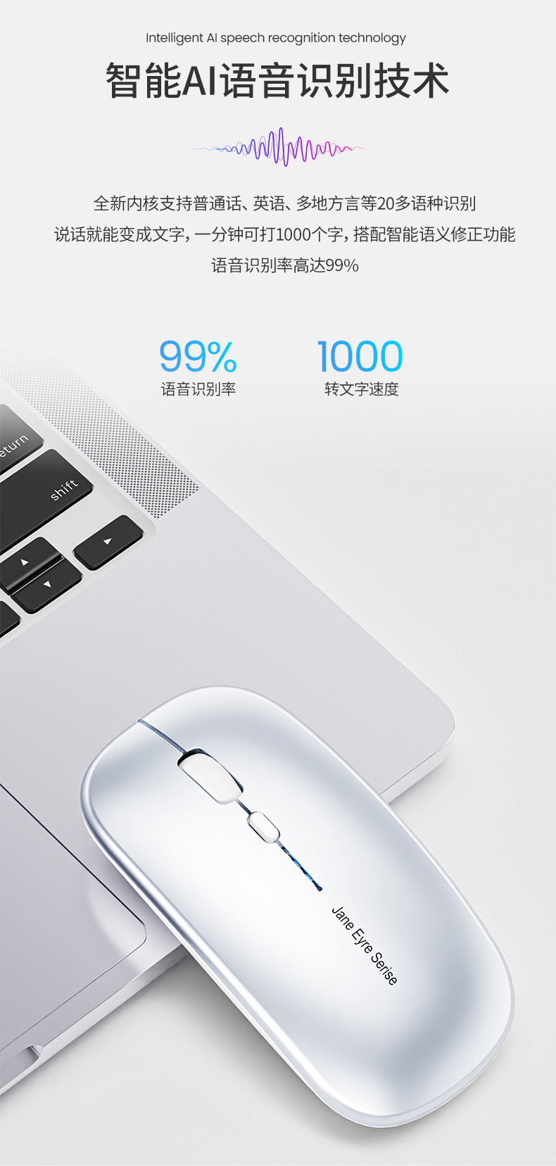 선두 주자 Ai 지능형 음성 입력 마우스 무선 블루투스 음소거 충전 음성 음성 제어 입력 Xunfei 마우스스토어 가기