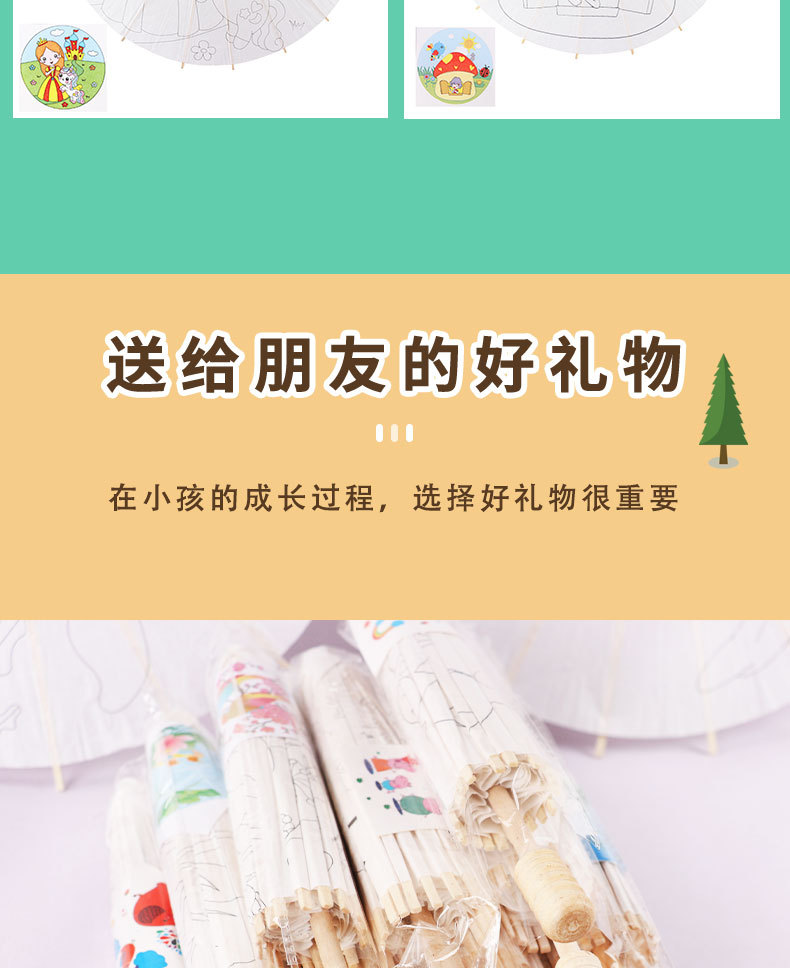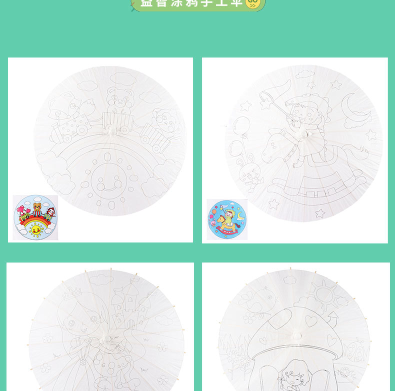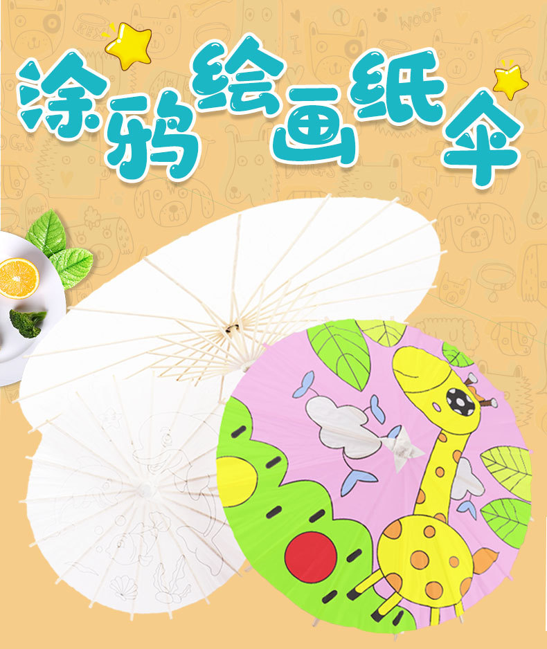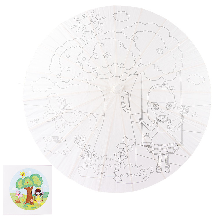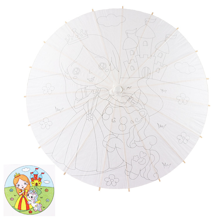 어린이 수제 낙서 오일 종이 우산 유치원 교육 DIY 빈 종이 우산 예술 그림 종이 우산 만화 그림 종이 우산