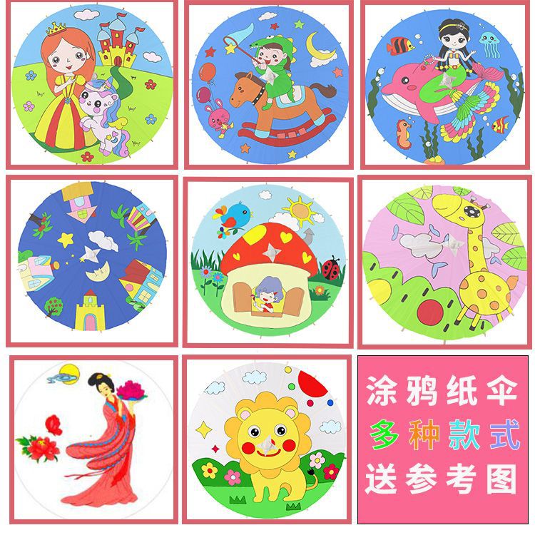 어린이 수제 낙서 오일 종이 우산 유치원 교육 DIY 빈 종이 우산 예술 그림 종이 우산 만화 그림 종이 우산스토어 가기