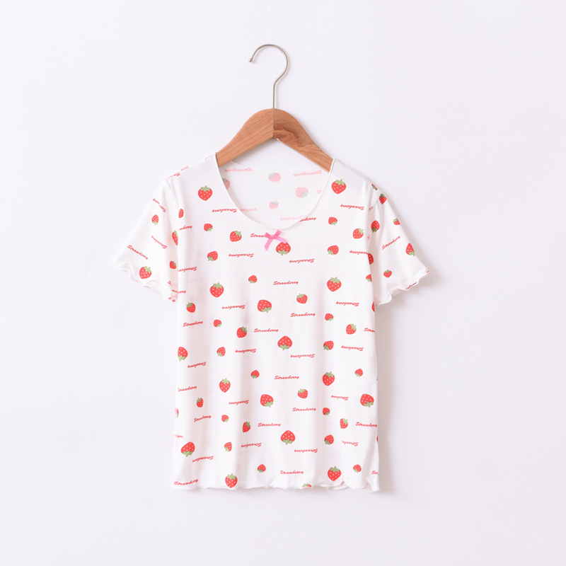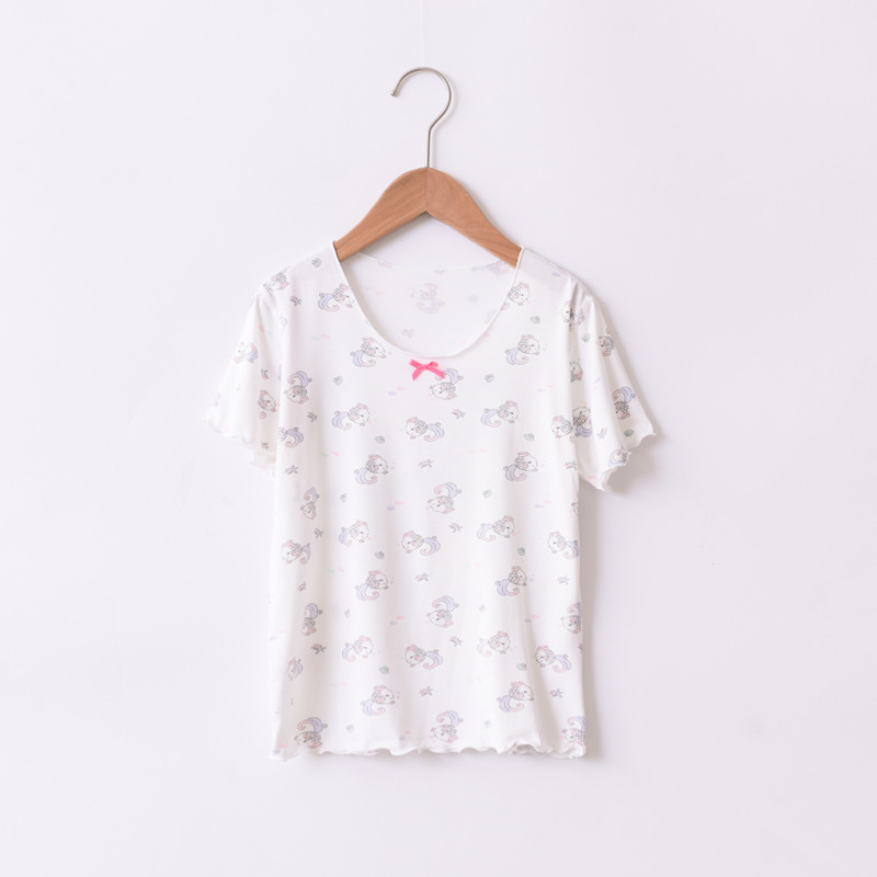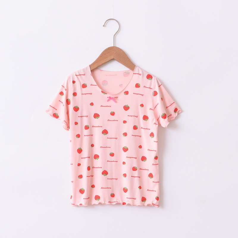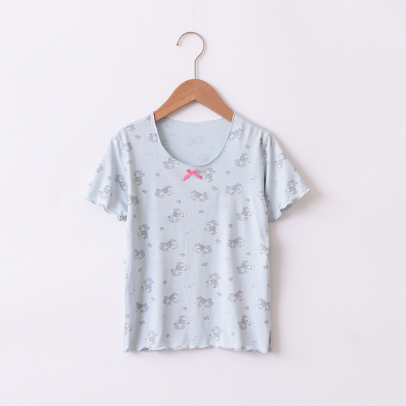 60 모달 어린이 반팔 티셔츠 탑 여름 얇은 공주 여아 홈 에어컨 의류 아기 잠옷