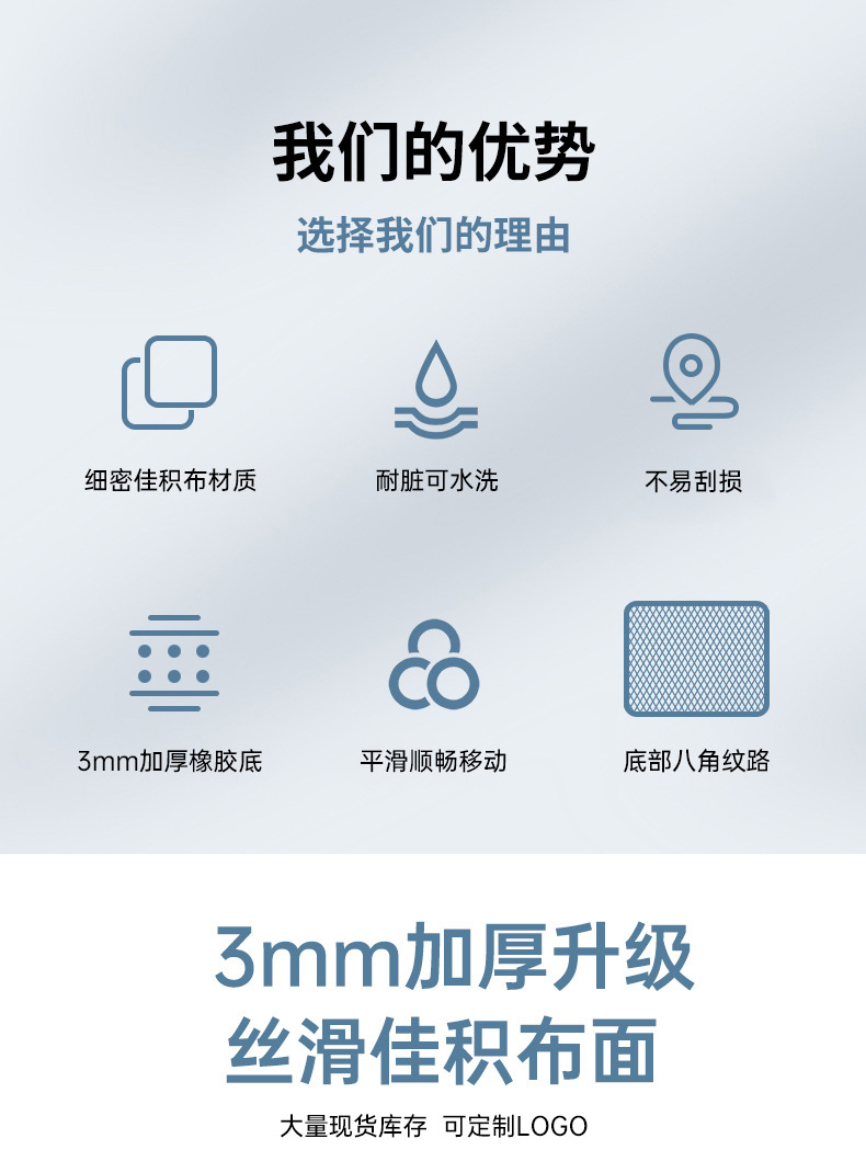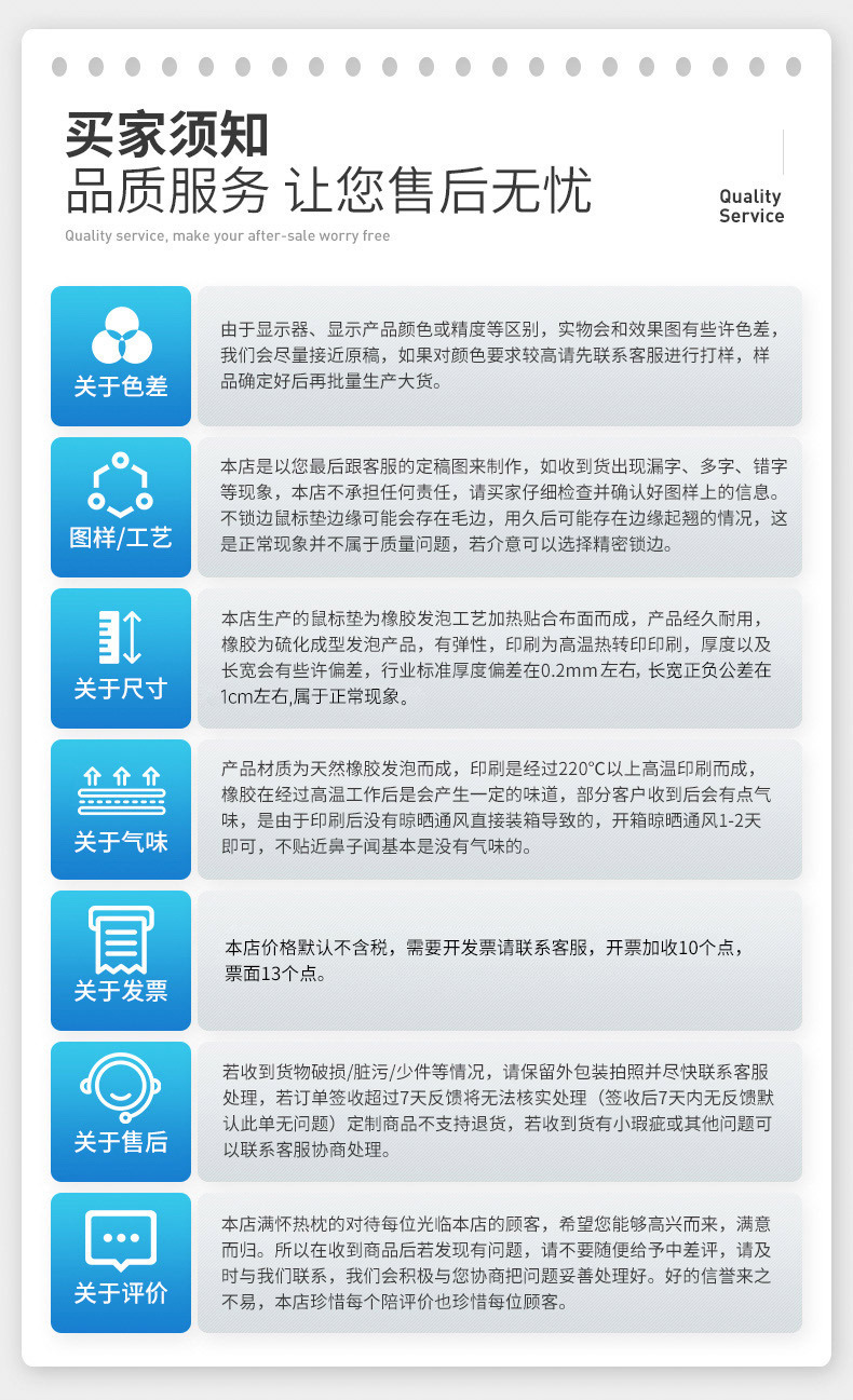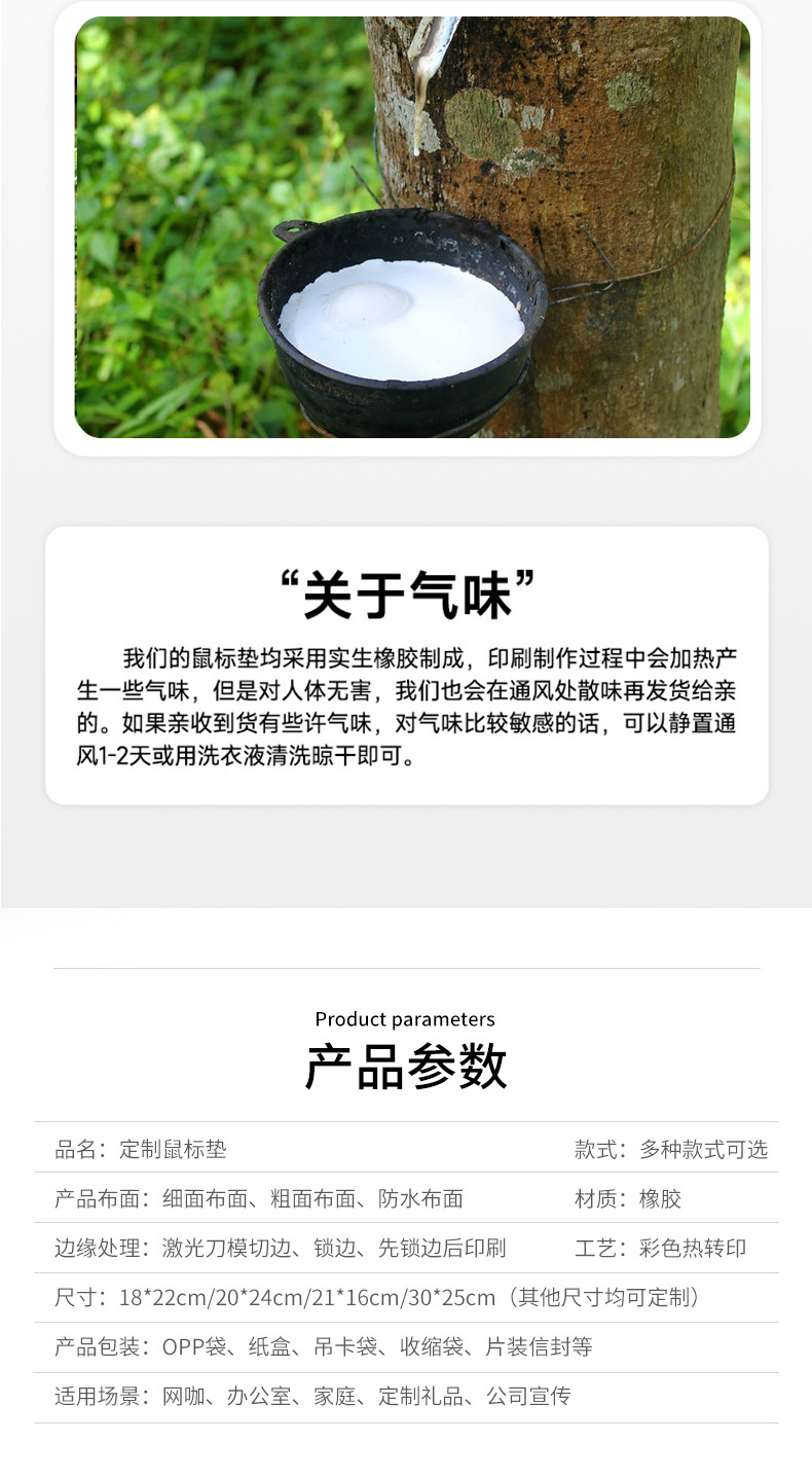 关于味道:鼠标垫是天然橡胶经过热转印而成,印刷制作过程中高温会产生一定的气味,部分垫子为现做现发可能散味不及时,如果收到后有气味可以散散味在使用。