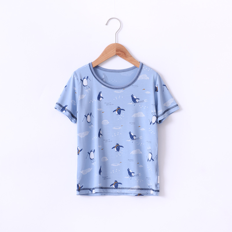 60 모달 어린이 반팔 티셔츠 탑 여름 얇은 남아 남아 홈 에어컨 의류 아기 잠옷