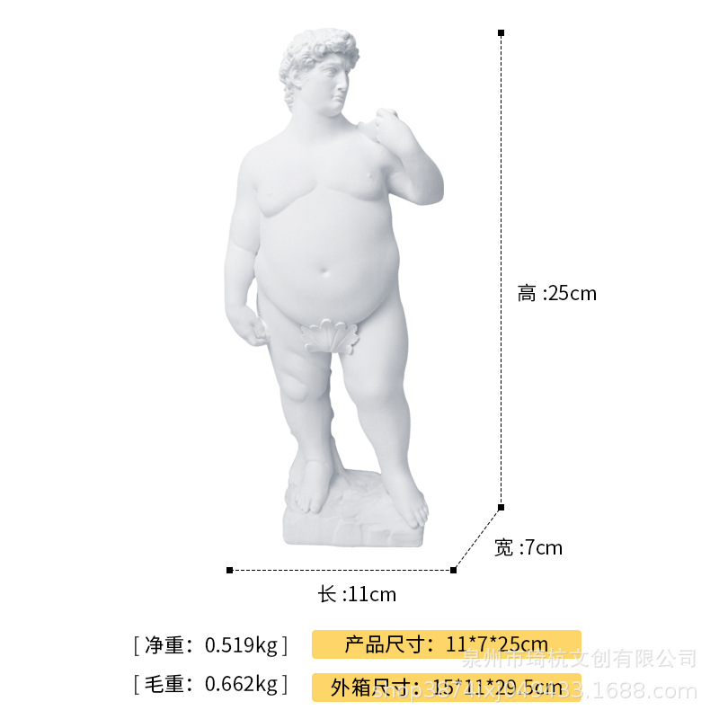 창조적 인 공예 장식품 뚱뚱한 데이비드 동상 홈 데스크탑 장식 서양 연예인 데이비드 동상 예술 장식