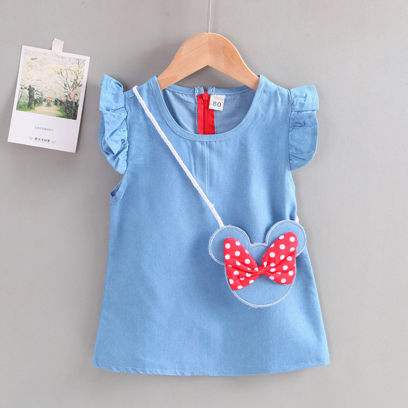 1-2-3-4 세 아기 소녀 여름 가방 치마 어린이 데님 허리 치마 여름 반팔 원피스스토어 가기