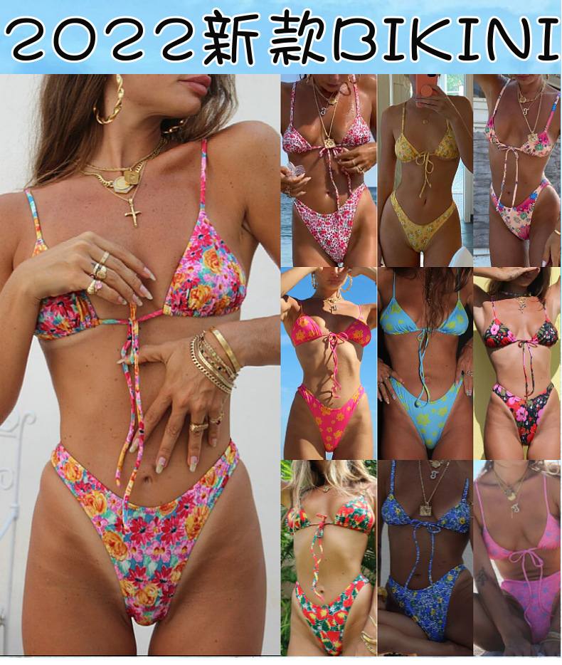 유럽과 미국 비키니 2022 새로운 재고 수영복 여자의 분할 삼각형 컵 수영 조수 수영복 비키니 재고