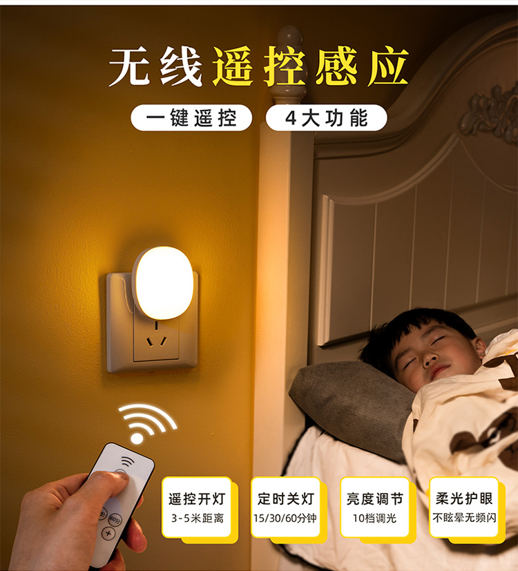 크리 에이 티브 원격 제어 야간 조명 어린이 플러그인 침대 옆 램프 led 아기 침실 수유 눈 보호 조명 제어 유도 램프