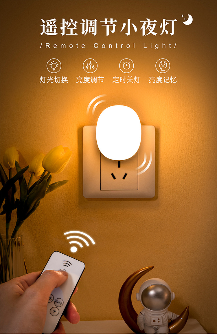 크리 에이 티브 원격 제어 야간 조명 어린이 플러그인 침대 옆 램프 led 아기 침실 수유 눈 보호 조명 제어 유도 램프스토어 가기
