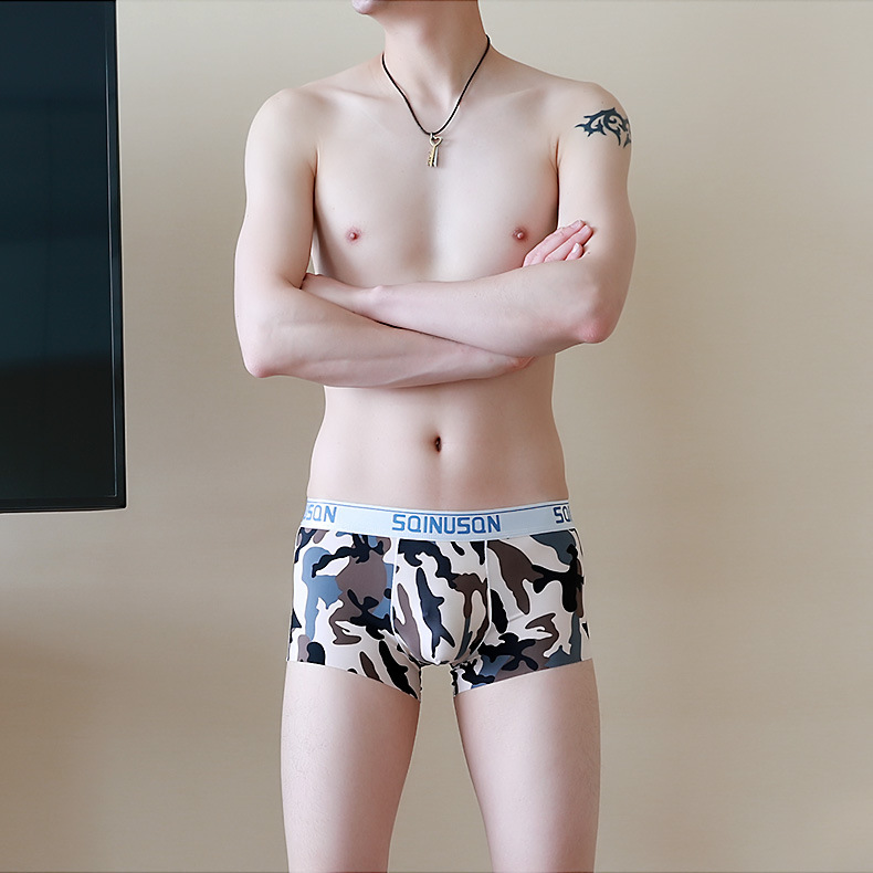 새로운 아이스 실크 남성 속옷 남성용 복서 남성용 섹시 통기성 얇은 인쇄 로우 웨이스트 학생 복서 속옷스토어 가기