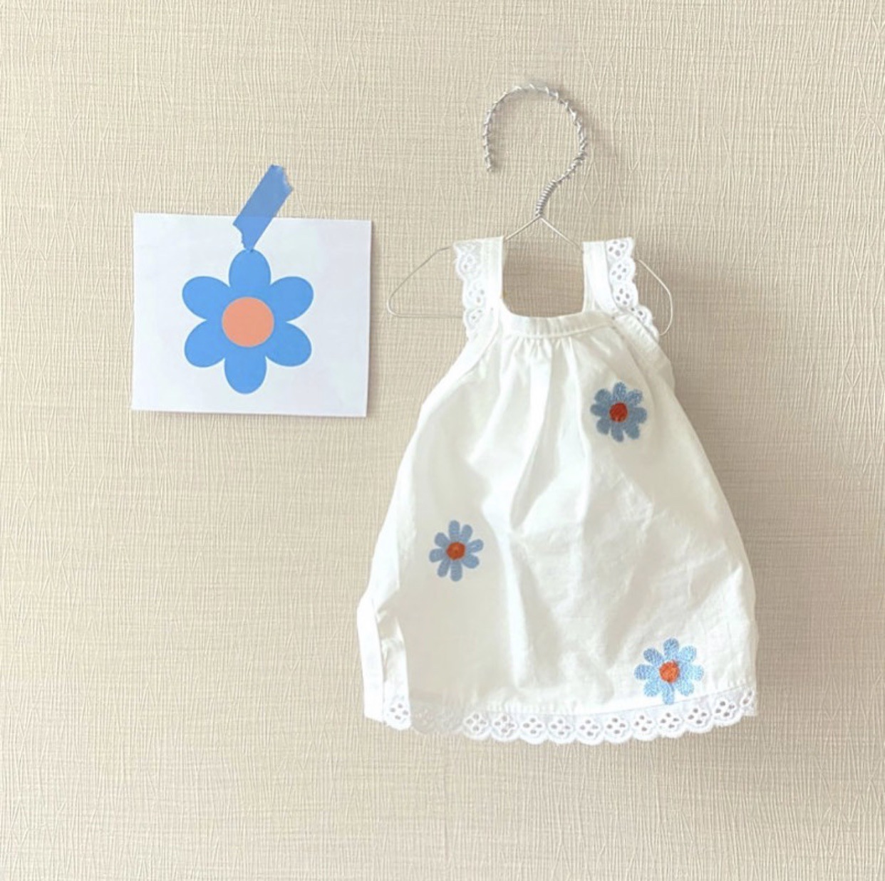 스팟 INS 한국 애완동물 옷 여름 강아지 스커트 자수 레이스 멜빵 파인애플 체리 데이지 3색