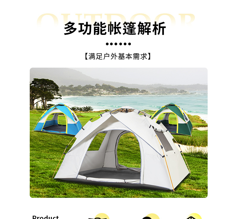 텐트 야외 휴대용 접이식 완전 자동 캠핑 해변 빠른 오픈 캠핑 실버 접착제 코팅 두꺼운 방수 도매