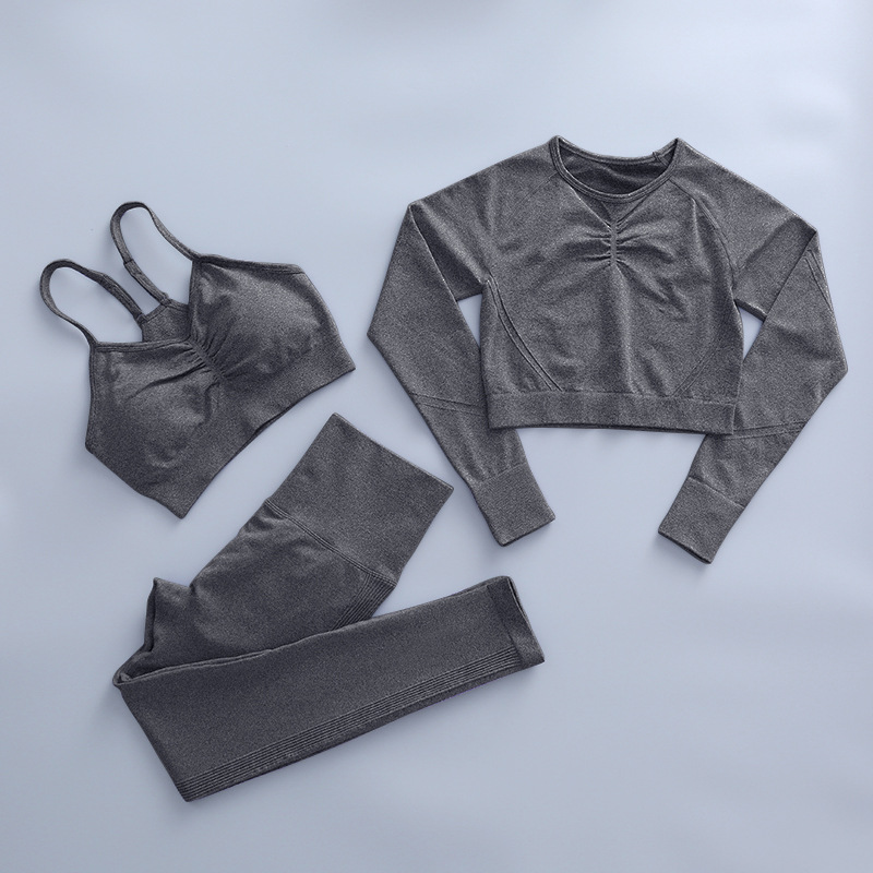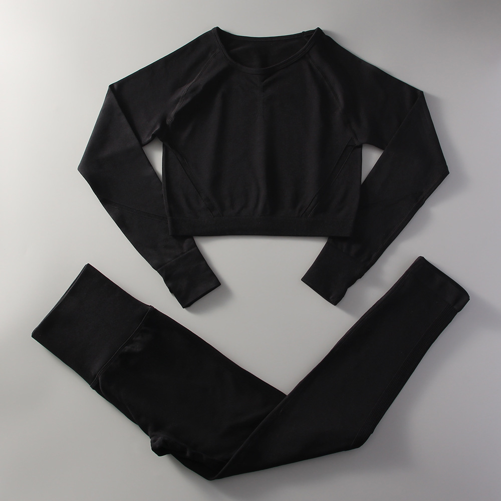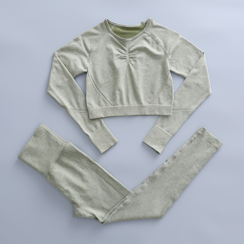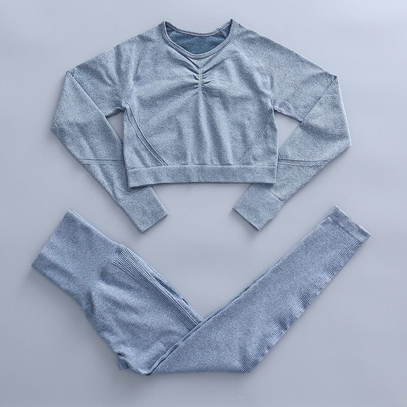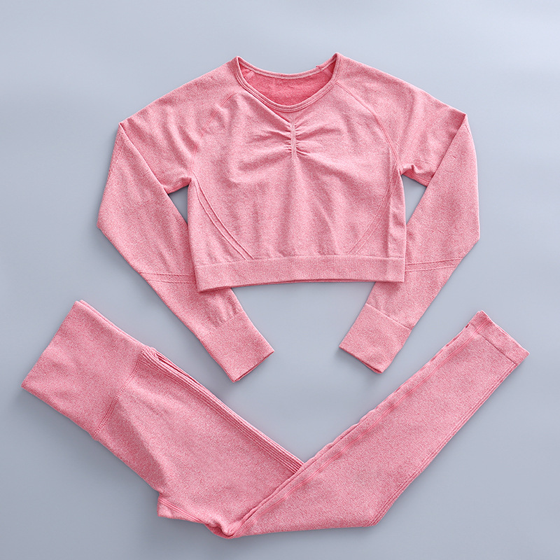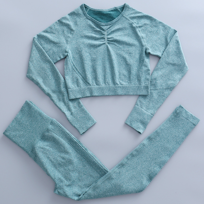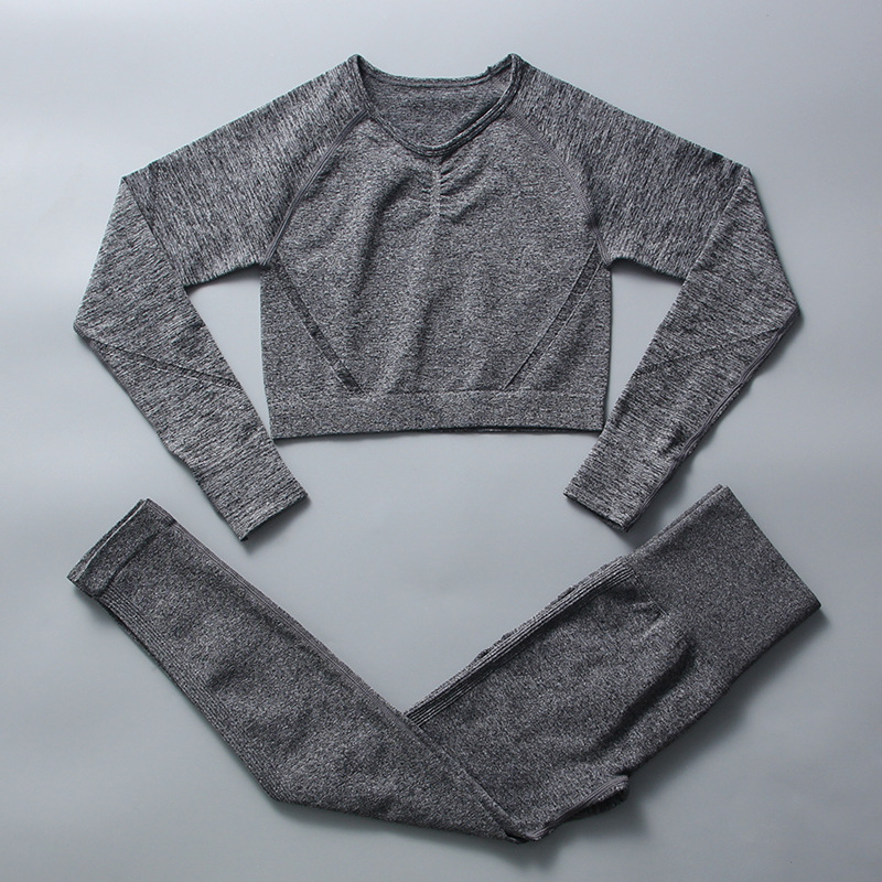 유럽과 미국 원활한 요가 의류 가을과 겨울 니트 꽉 피트니스 의류 최고 여성의 크로스 국경 엉덩이 리프팅 스마일 스포츠 세트