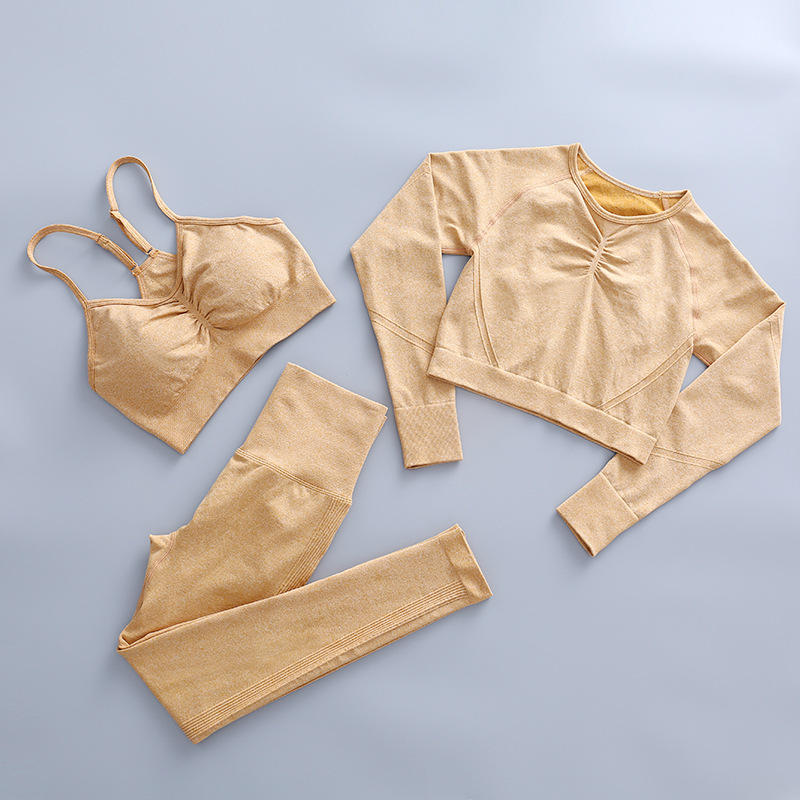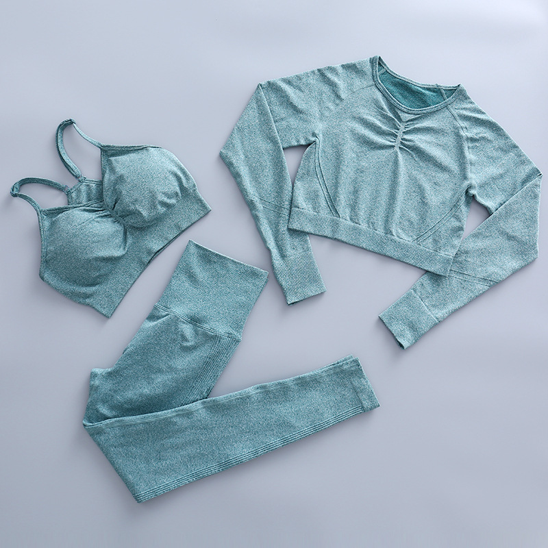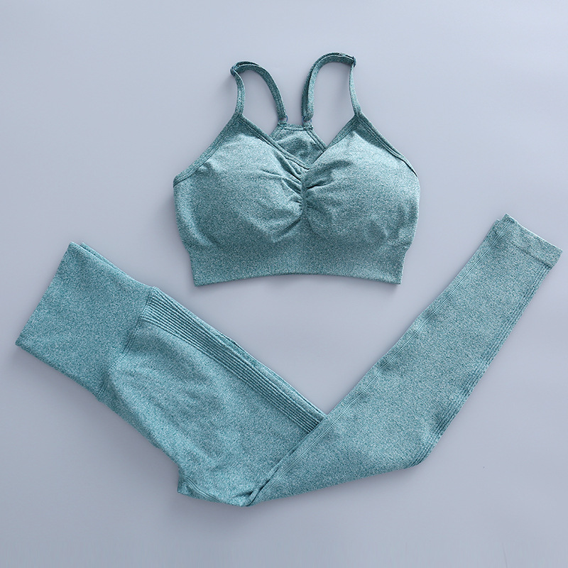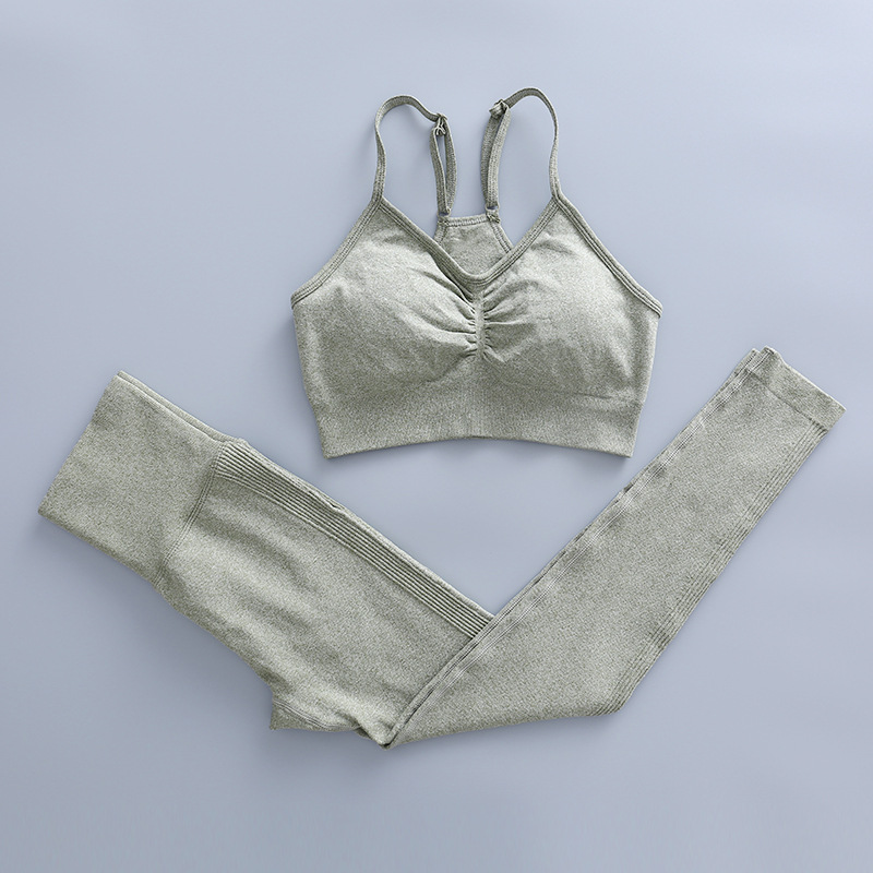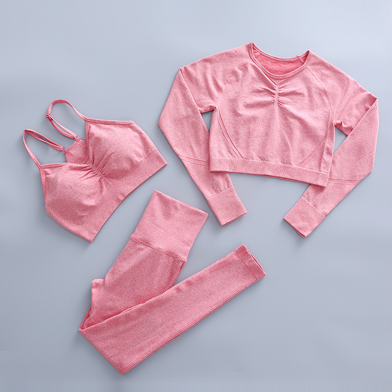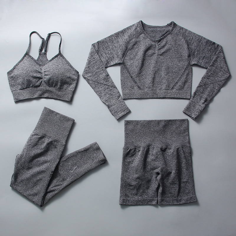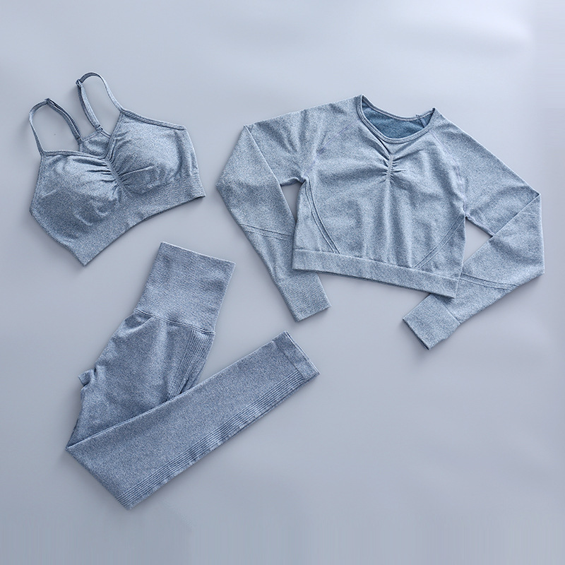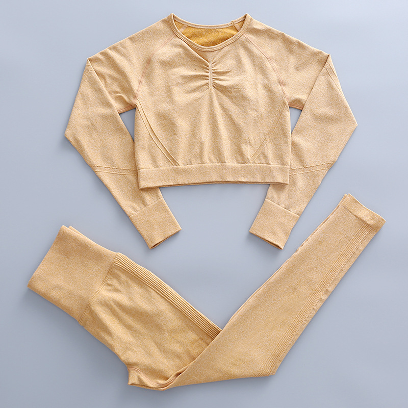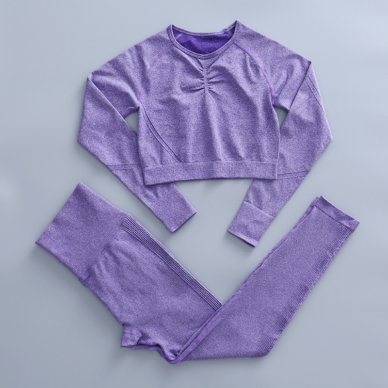 유럽과 미국 원활한 요가 의류 가을과 겨울 니트 꽉 피트니스 의류 최고 여성의 크로스 국경 엉덩이 리프팅 스마일 스포츠 세트