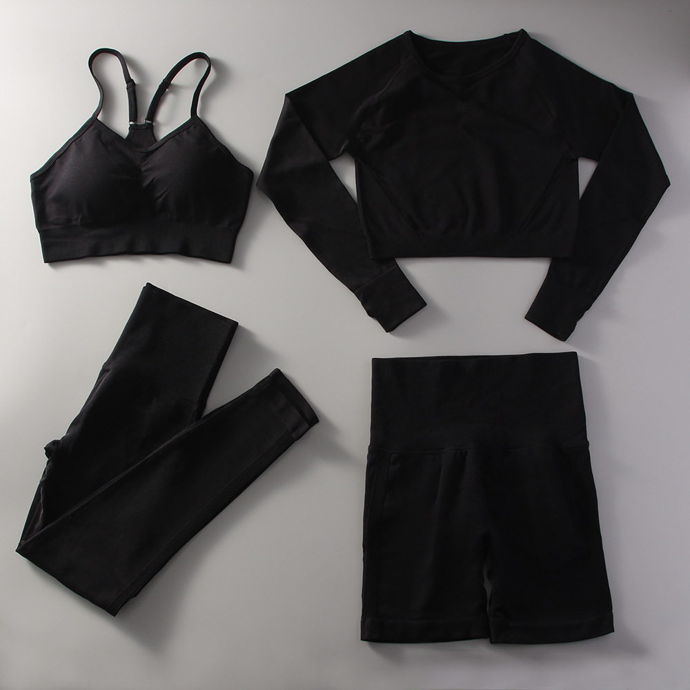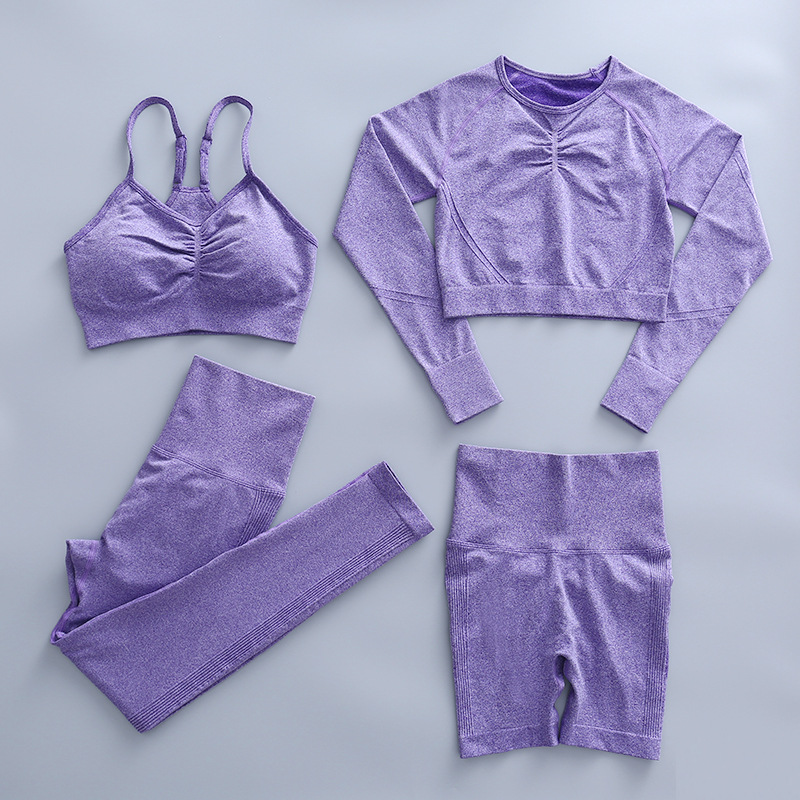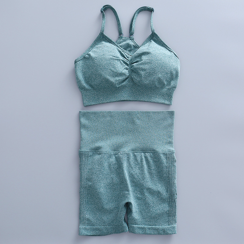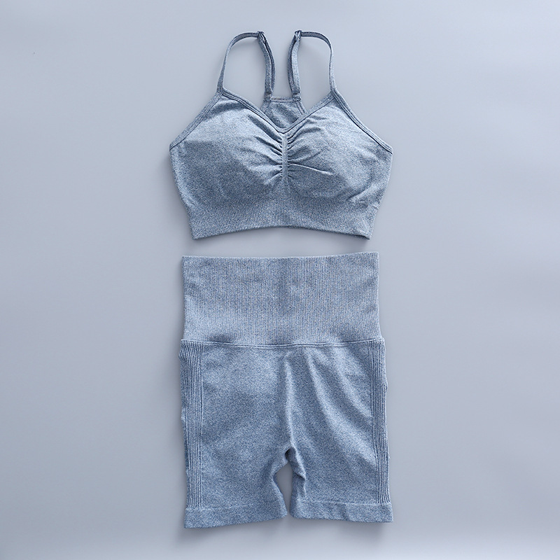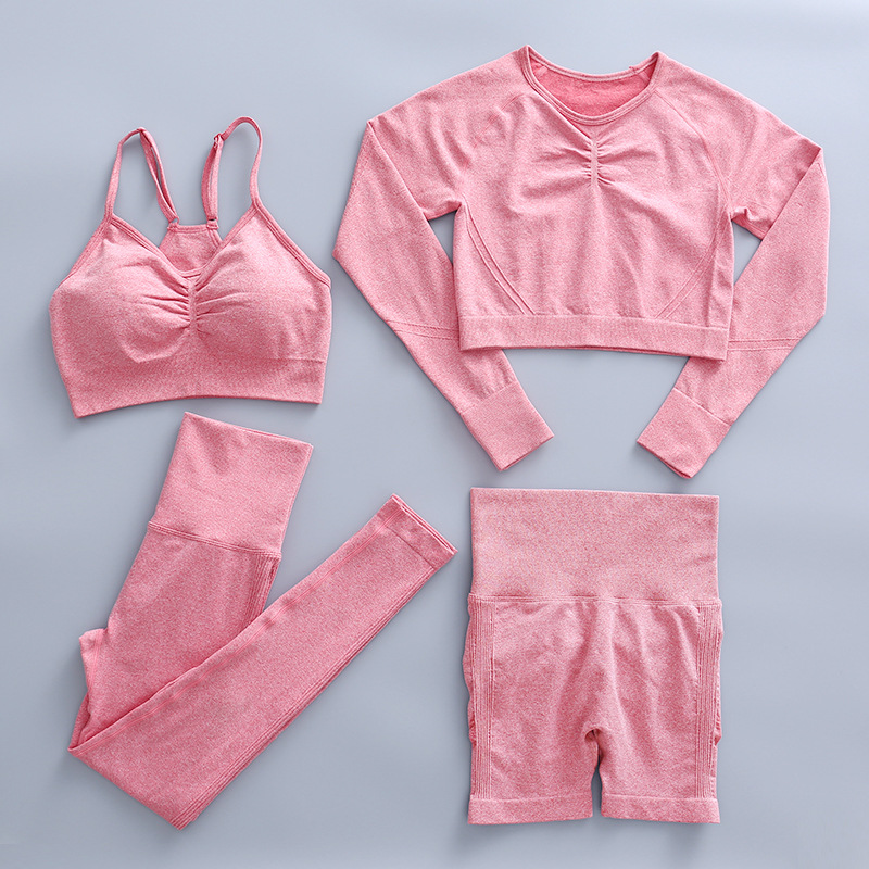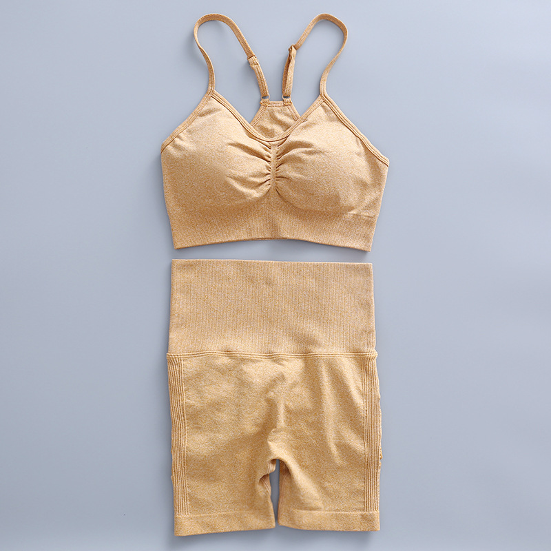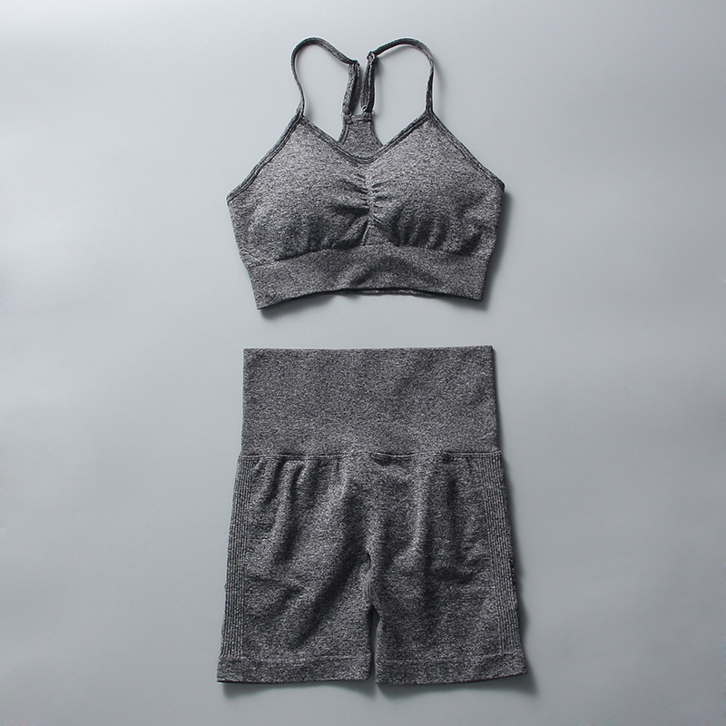 유럽과 미국 원활한 요가 의류 가을과 겨울 니트 꽉 피트니스 의류 최고 여성의 크로스 국경 엉덩이 리프팅 스마일 스포츠 세트