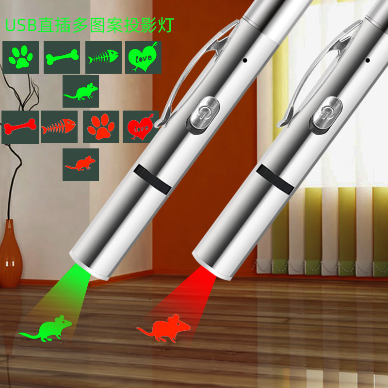 새로운 선반 애완 동물 용품 도매 고양이 장난감 스테인레스 스틸 멀티 패턴 프로젝션 램프 고양이 재미 고양이 스틱 재고